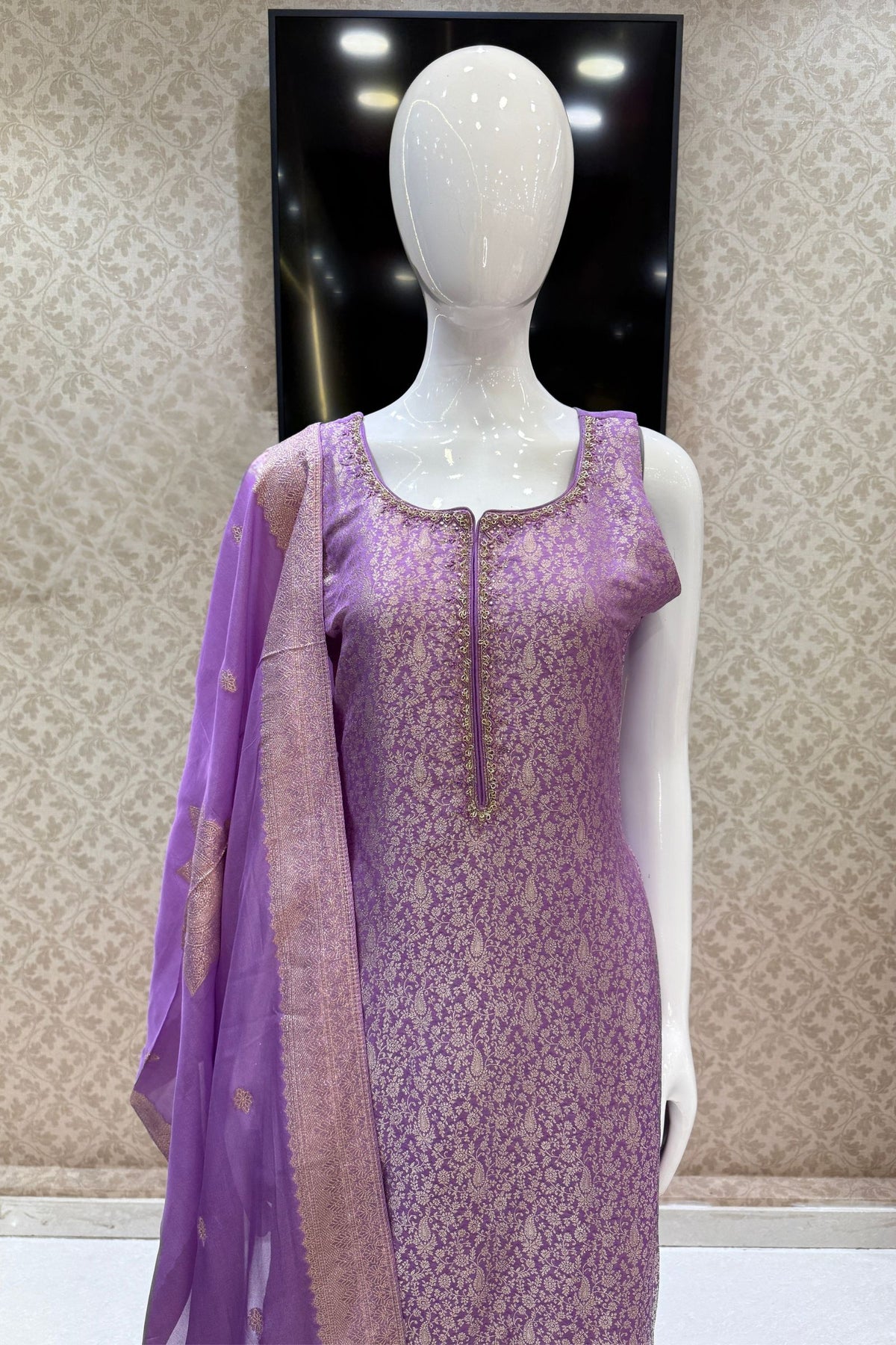 Lavender Zardozi, Stone, Thread and Brocade work Straight Cut Salwar Suit