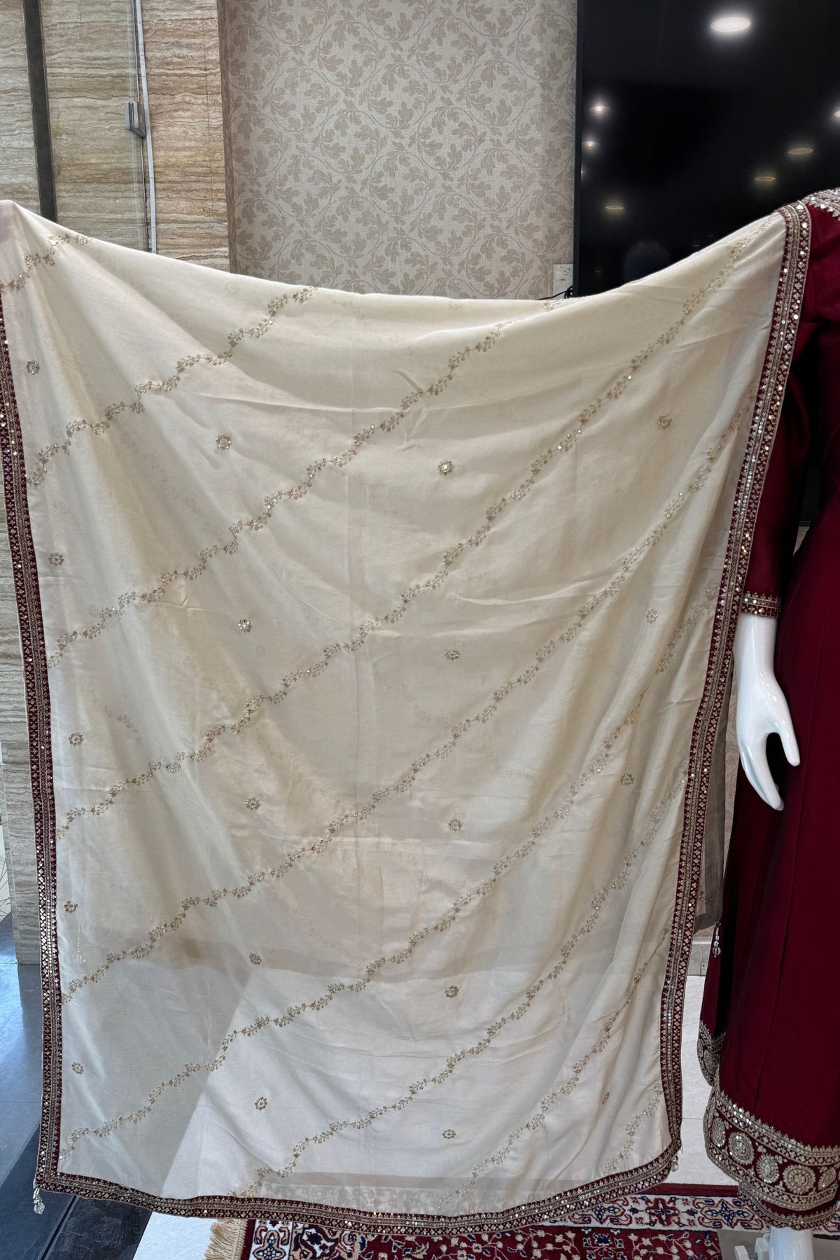 Maroon Sequins and Zari work A-line Cut Salwar Suit