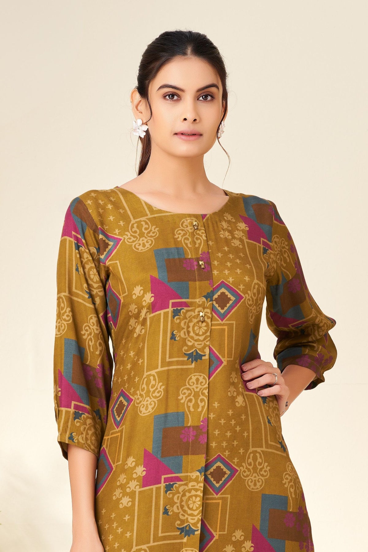 Olive Green with Multicolor Digital Print Straight Cut Salwar Suit