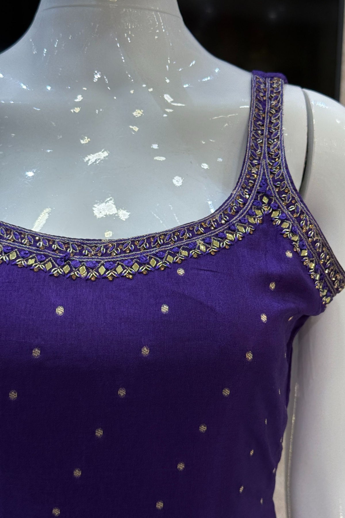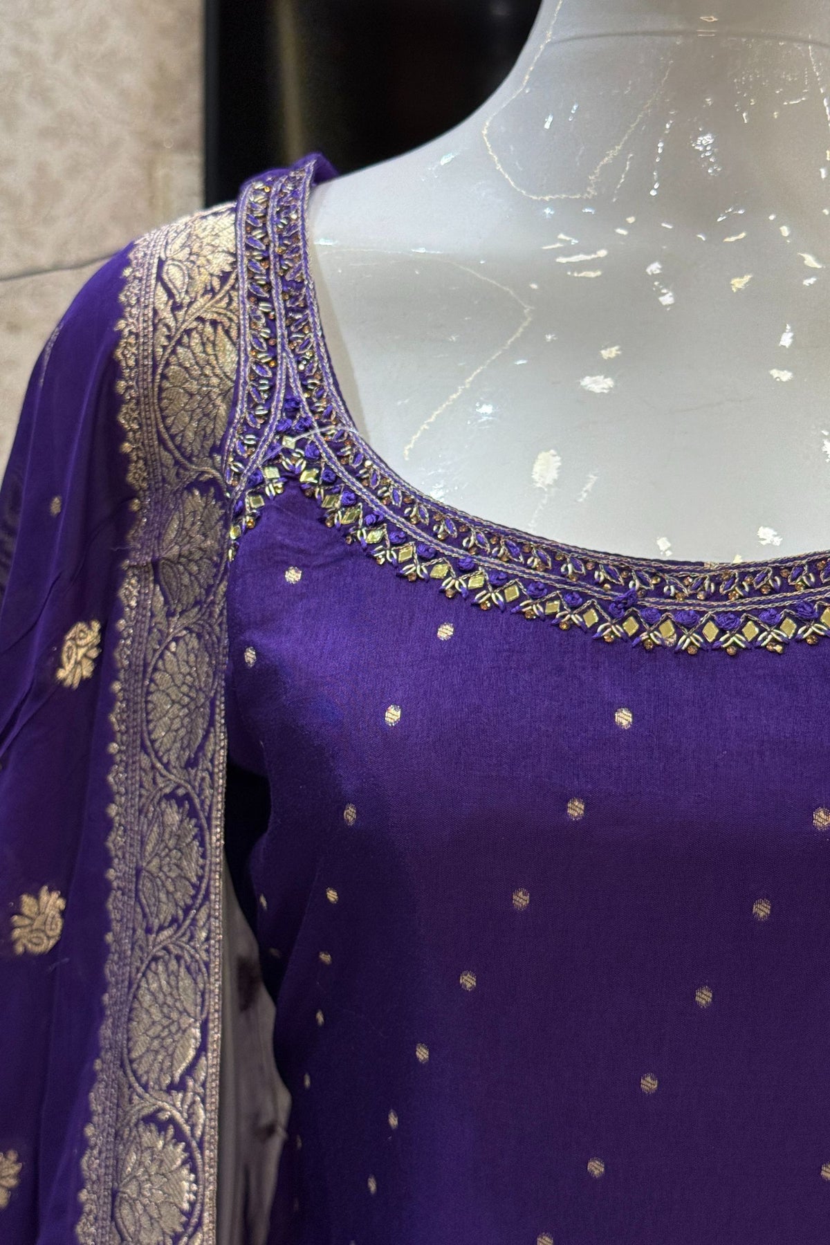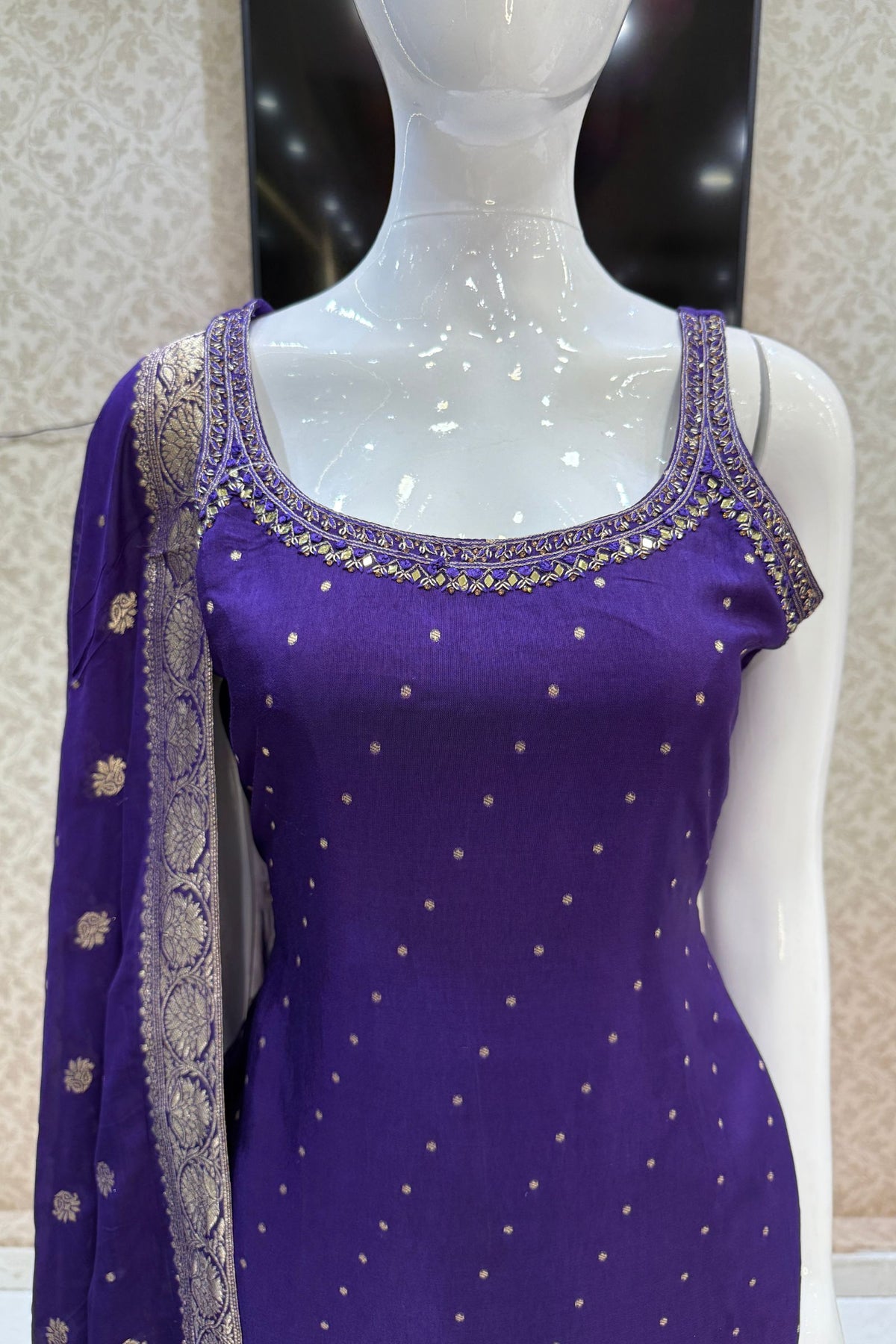 Purple Mirror, Stone, Zari and Banaras work Straight Cut Salwar Suit