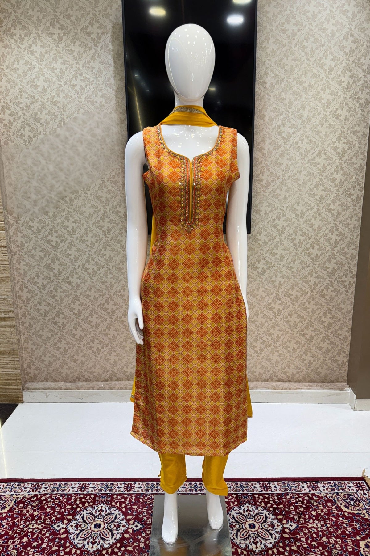 Yellow Beads, Stone, Mirror, Zardozi and Thread work with Digital Print Straight Cut Salwar Suit