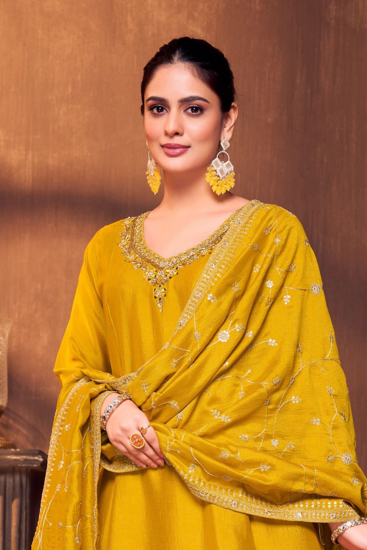Yellow Sequins, Zari, Mirror, Stone and Zardozi work A-line Cut Salwar Suit