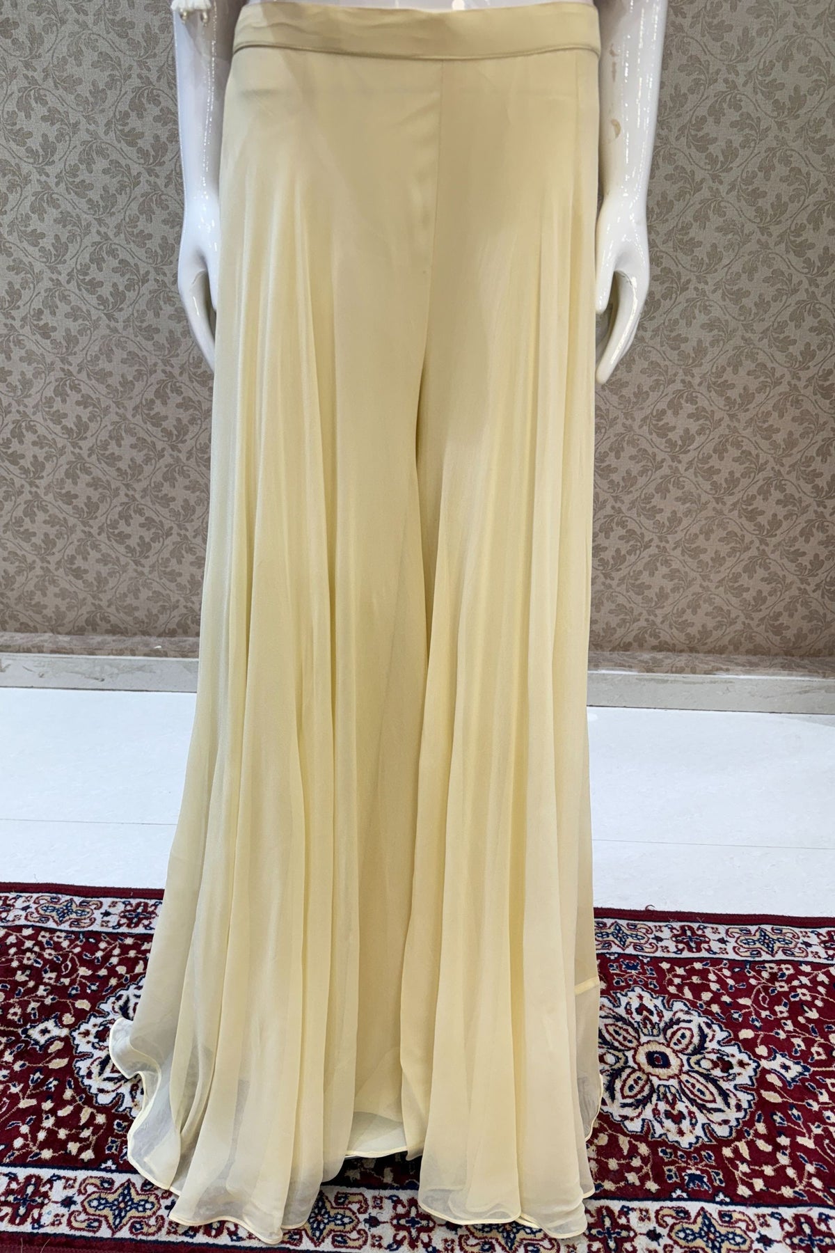 | Fabric | Crop Top - Georgette, Overcoat - Georgette and Palazzo - Georgette |