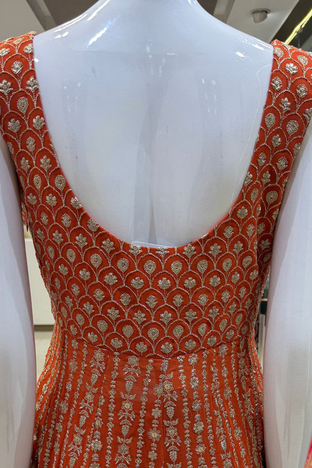 Orange Sequins, Zari, Mirror, Stone and Beads work Palazzo Salwar Suit