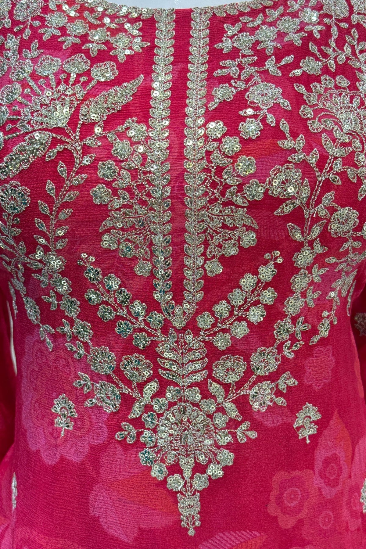 Rani Pink Sequins and Zari work with Digital Print Palazzo Salwar Suit
