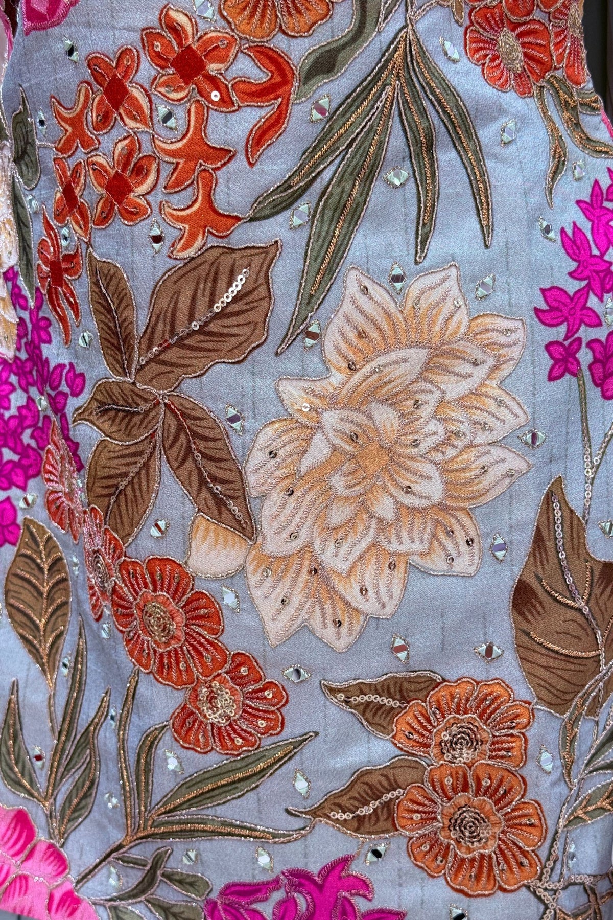 | Features | Mirror, Sequins, Zari and Beads work with Floral Print |
