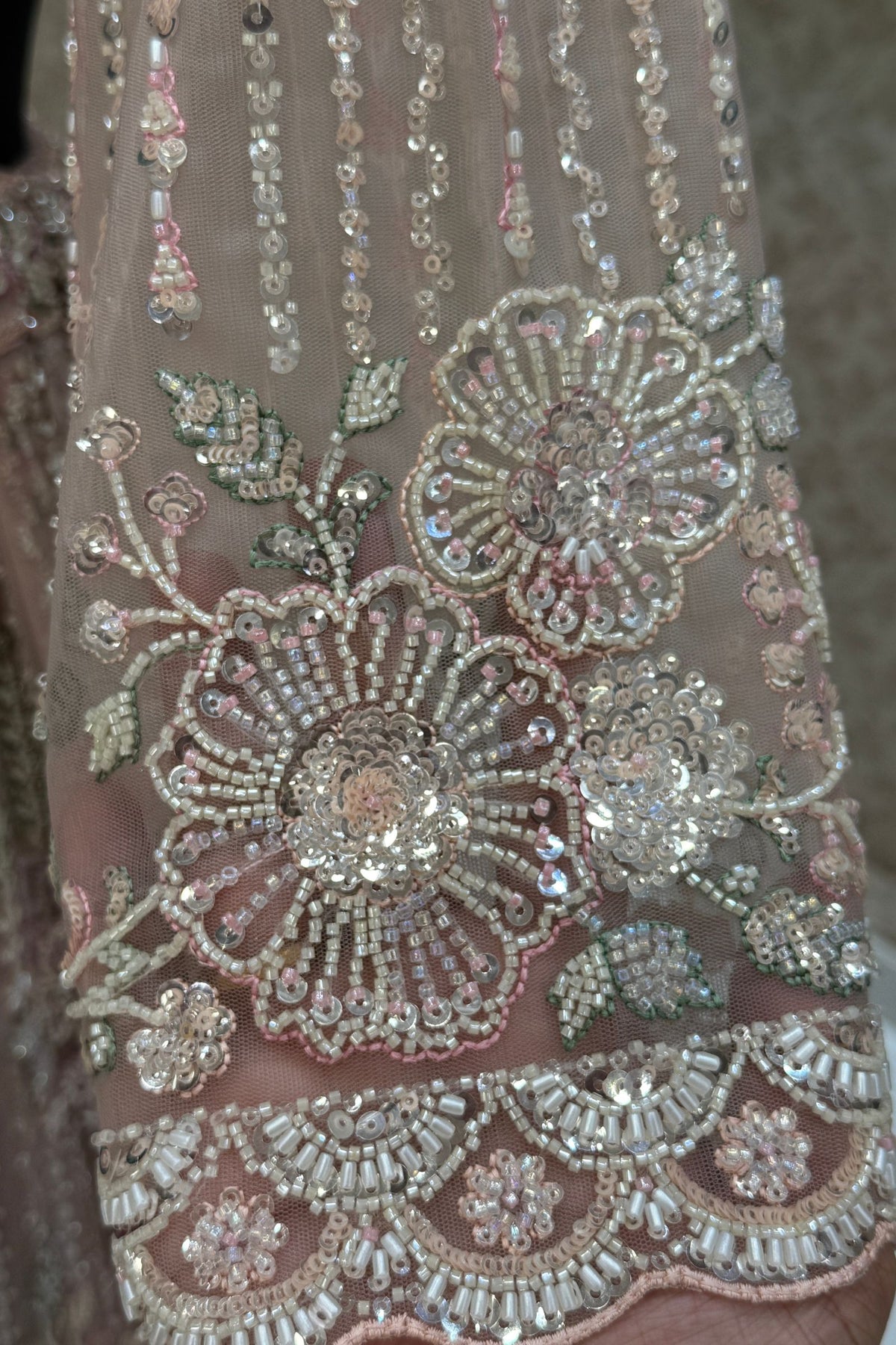 | Features | Sequins, Beads and Zari Thread work |