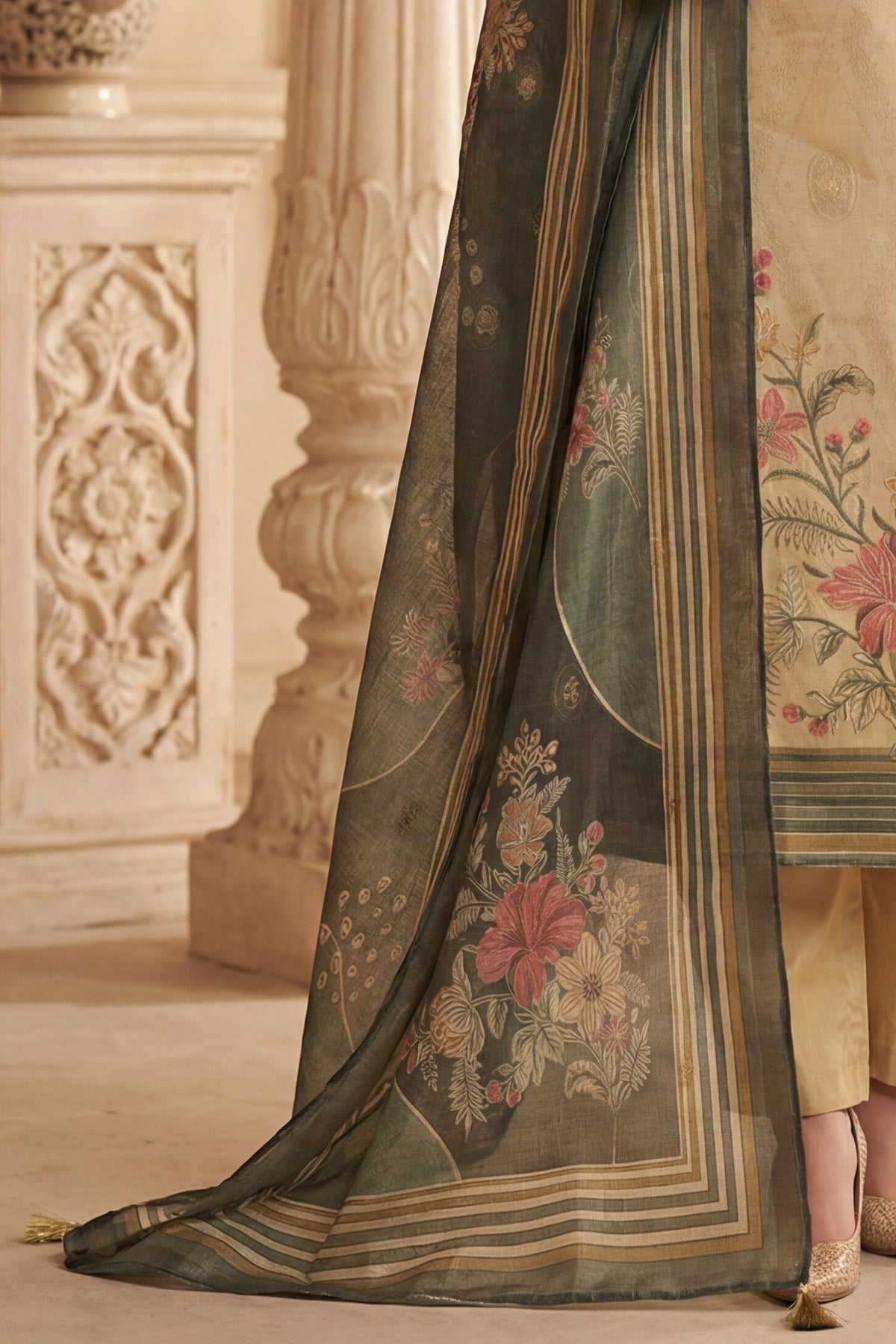 | Colour | Beige and Olive Green Dupatta |