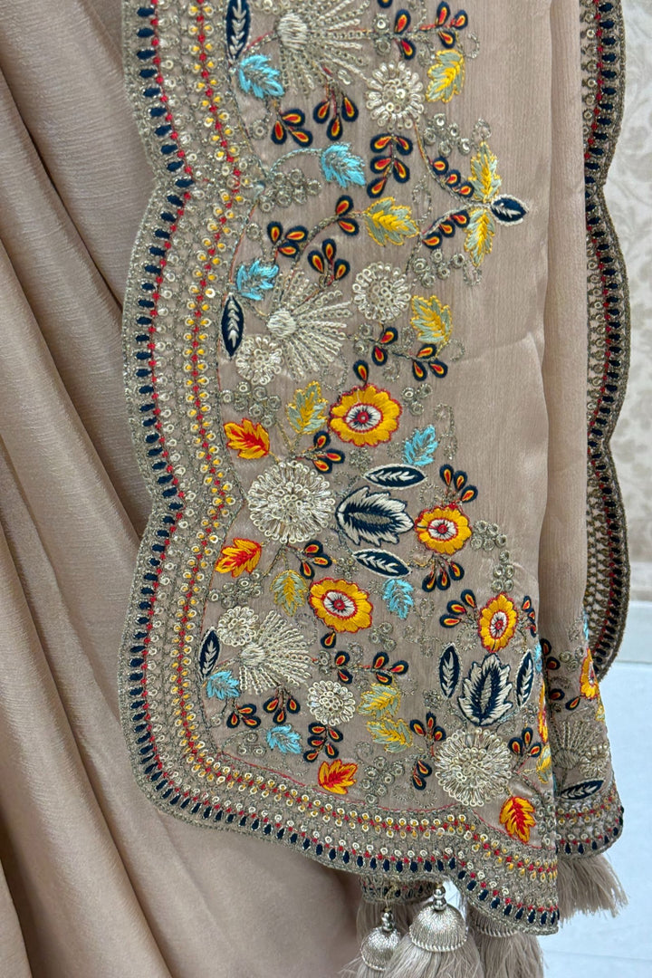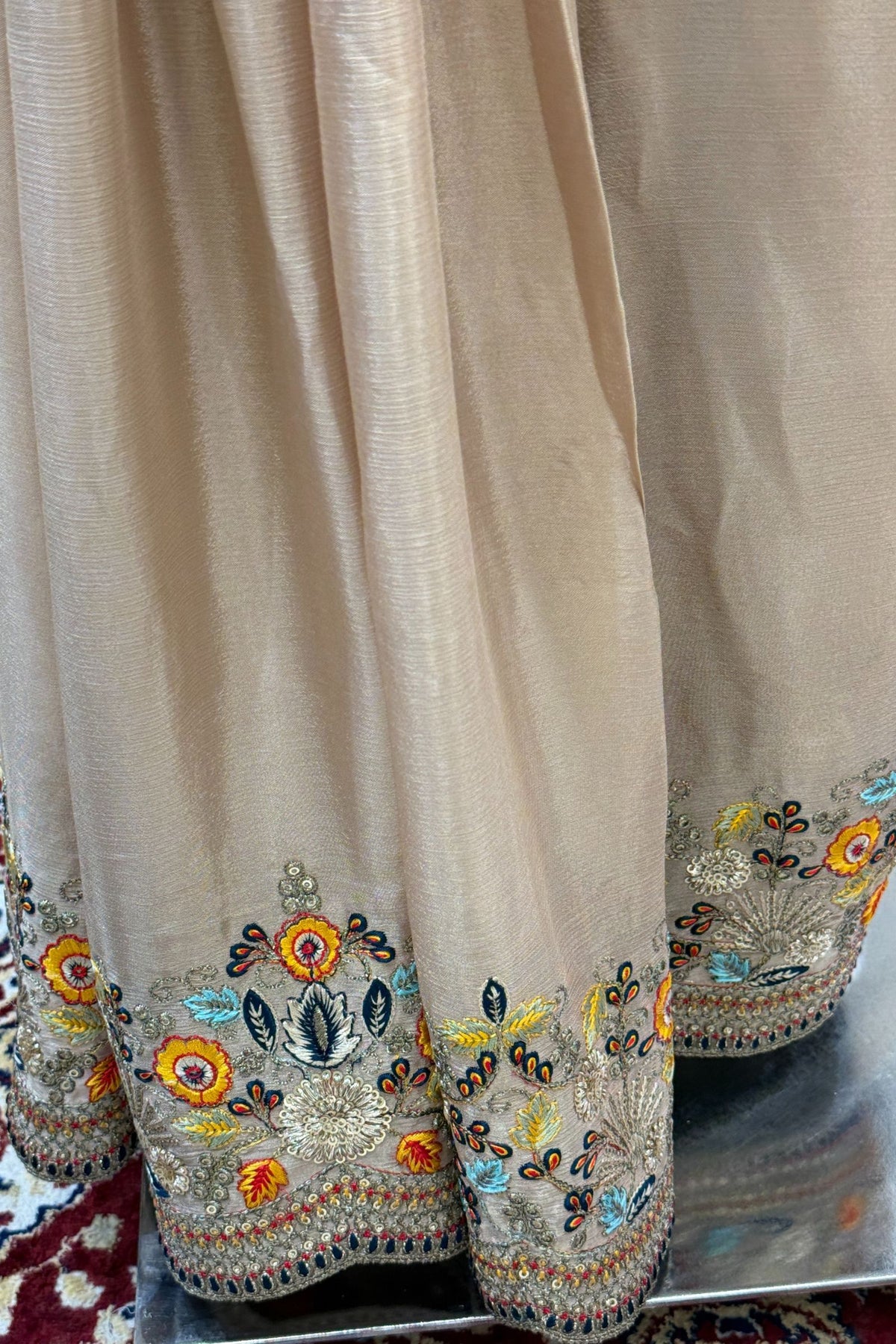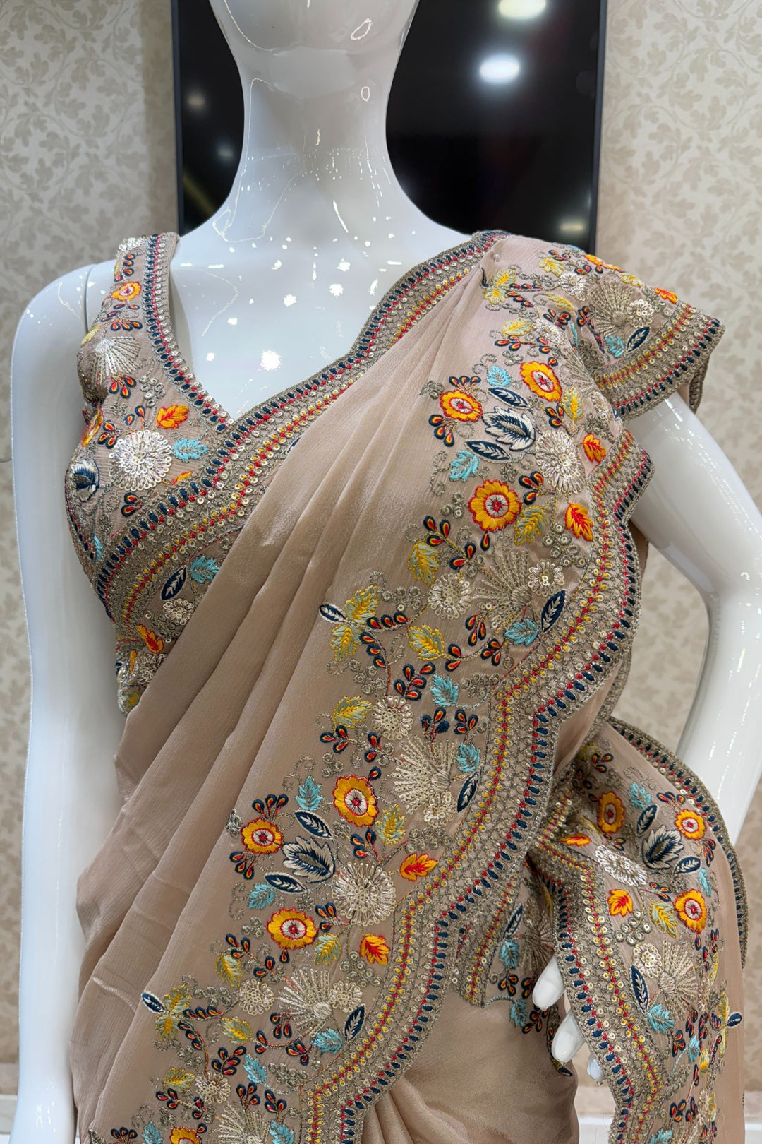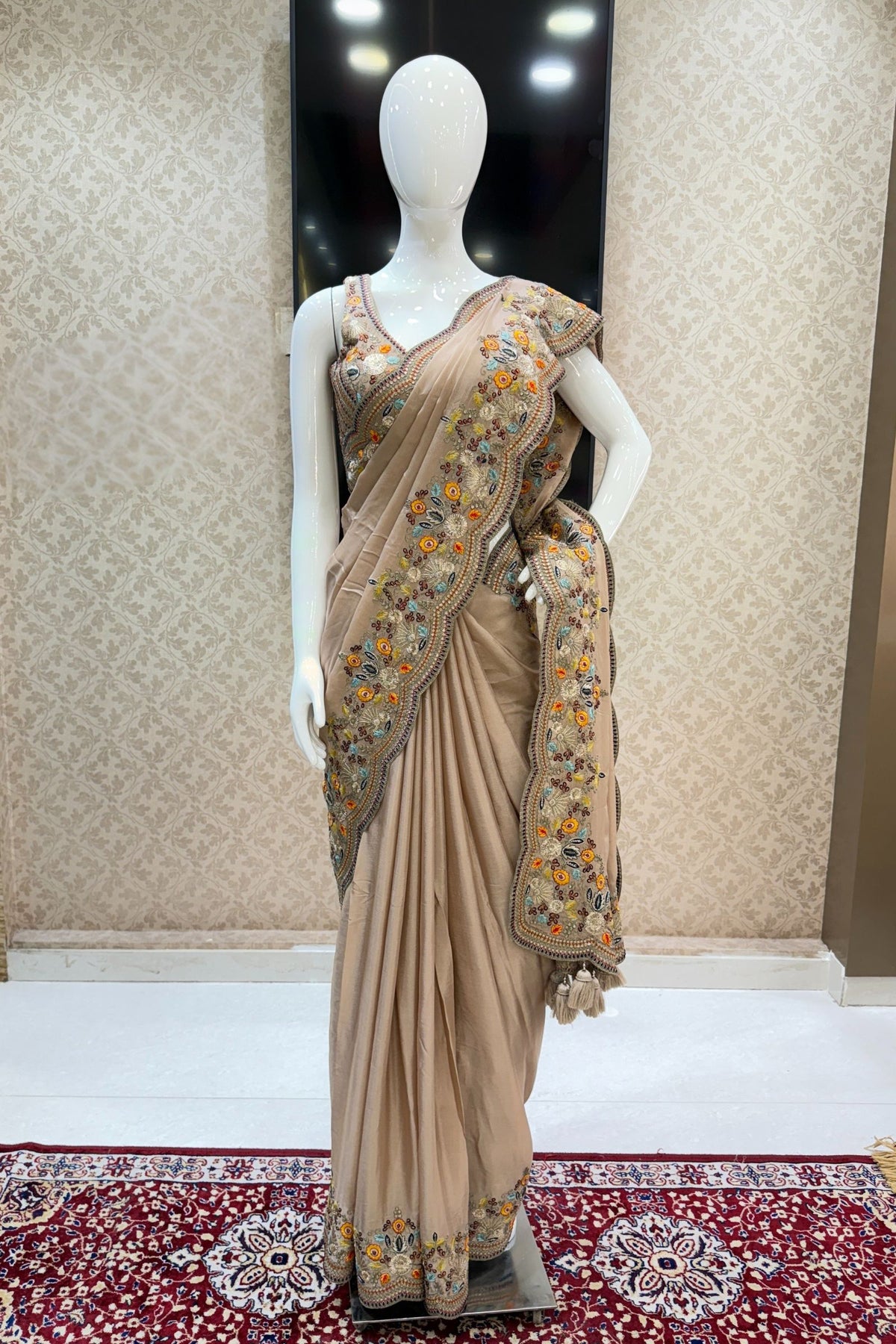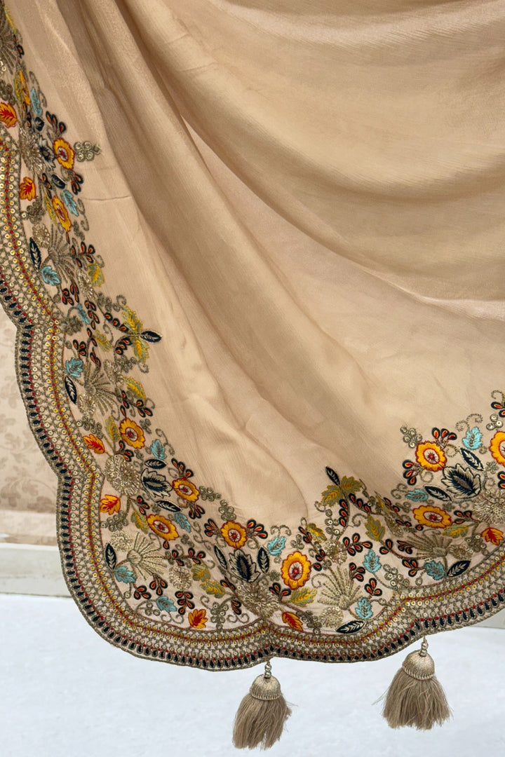 Beige Multicolor Embroidery, Sequins and Zari work Saree