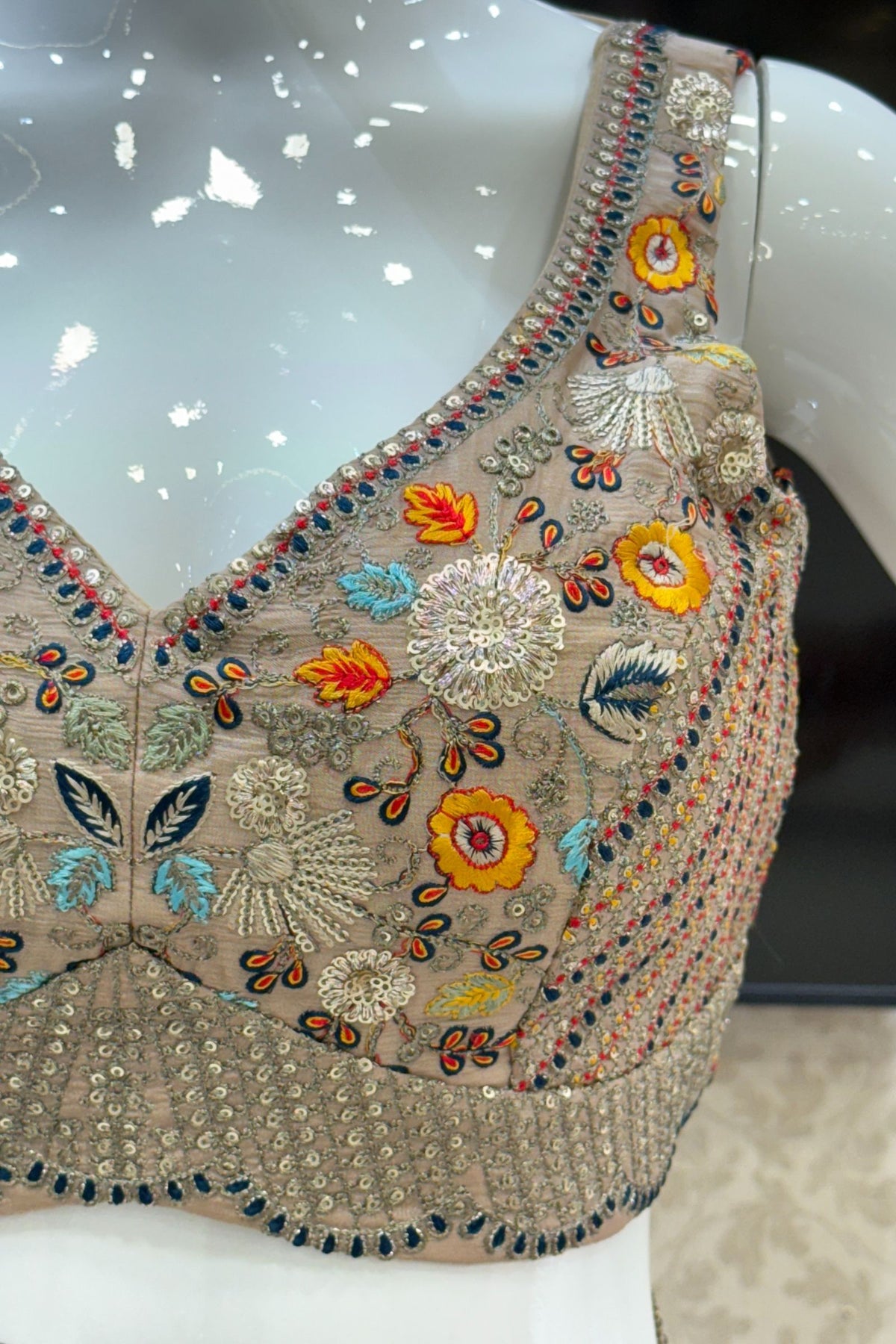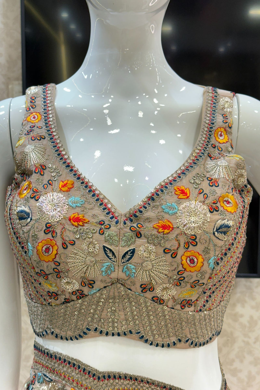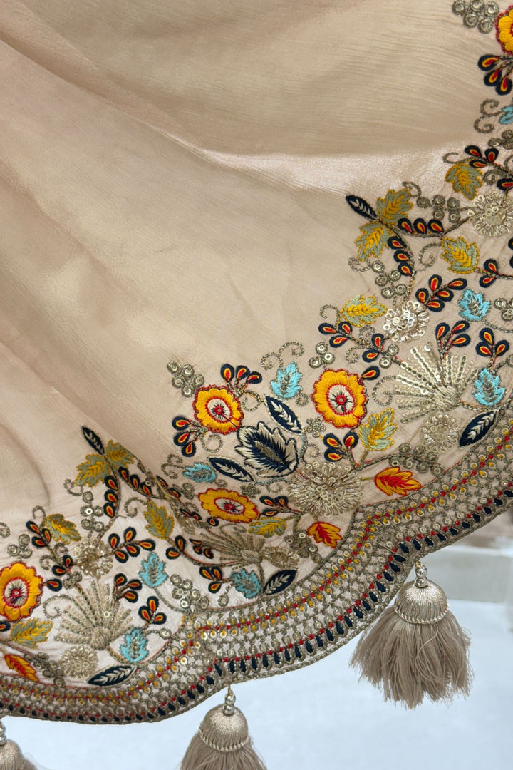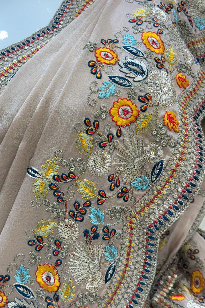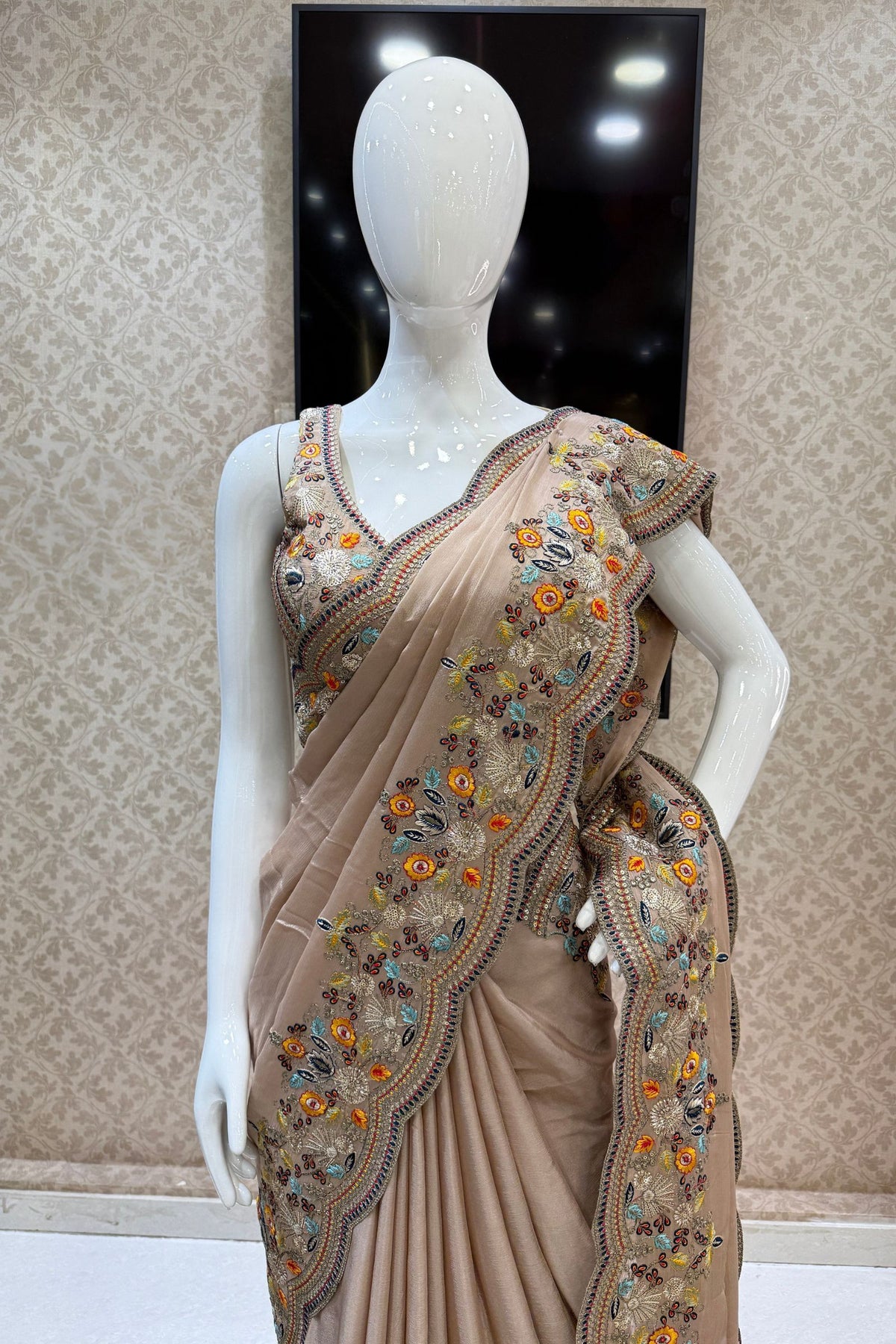 Beige Multicolor Embroidery, Sequins and Zari work Saree
