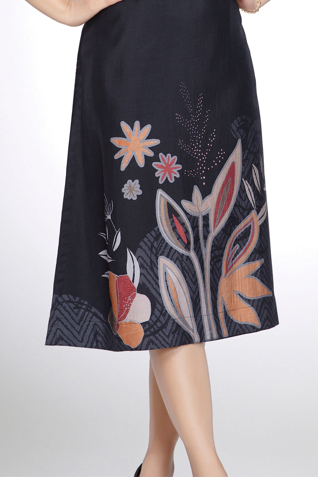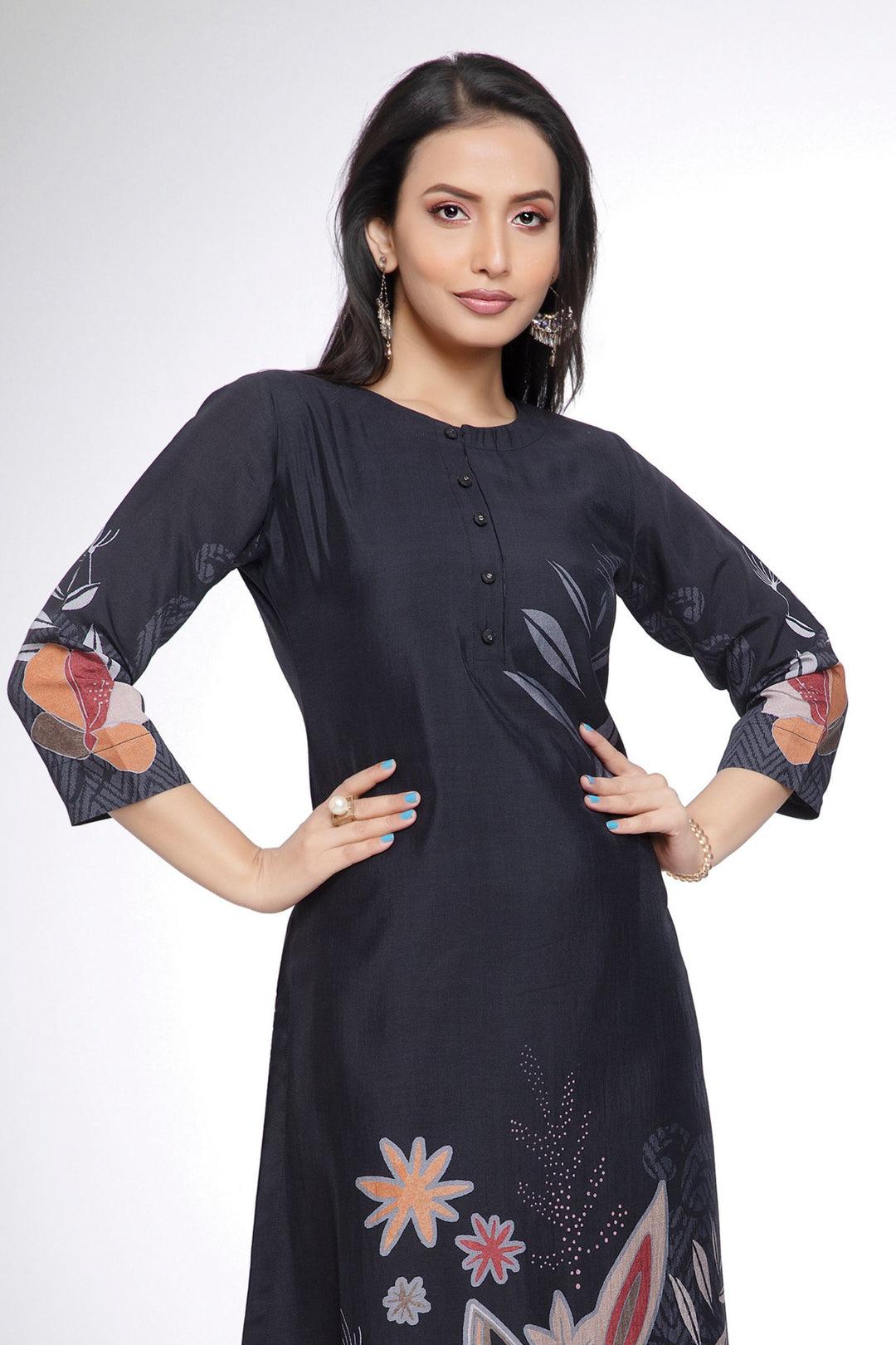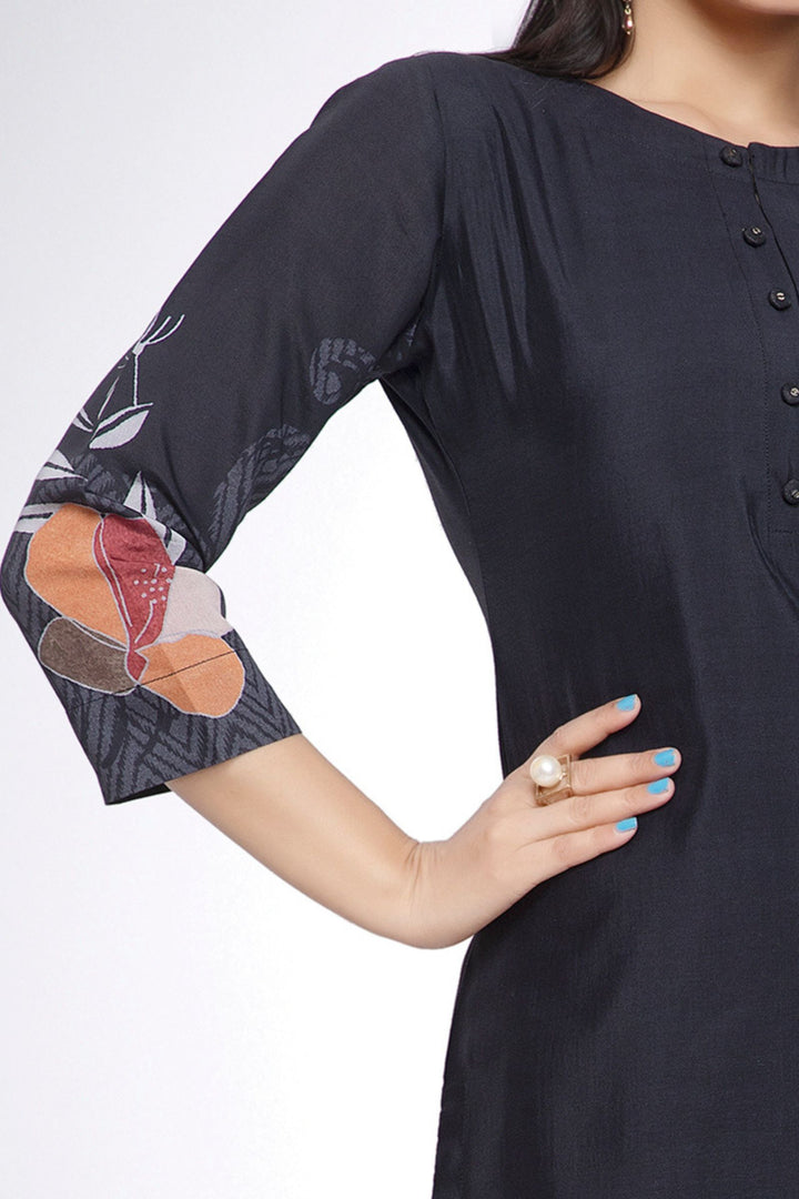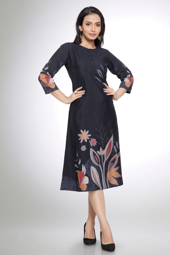 Black with Digital Print Calf Length Kurti