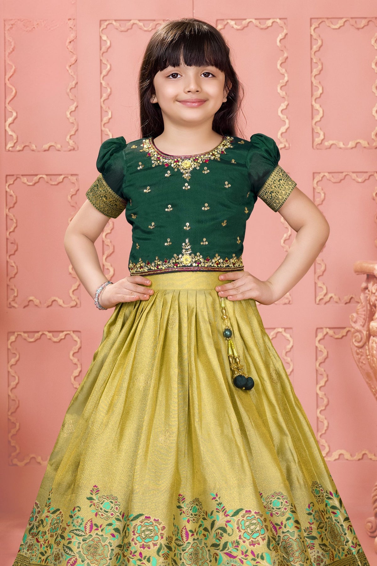 Bottle Green with Pista Green Sequins and Banaras Zari work Lehenga Choli for Girls