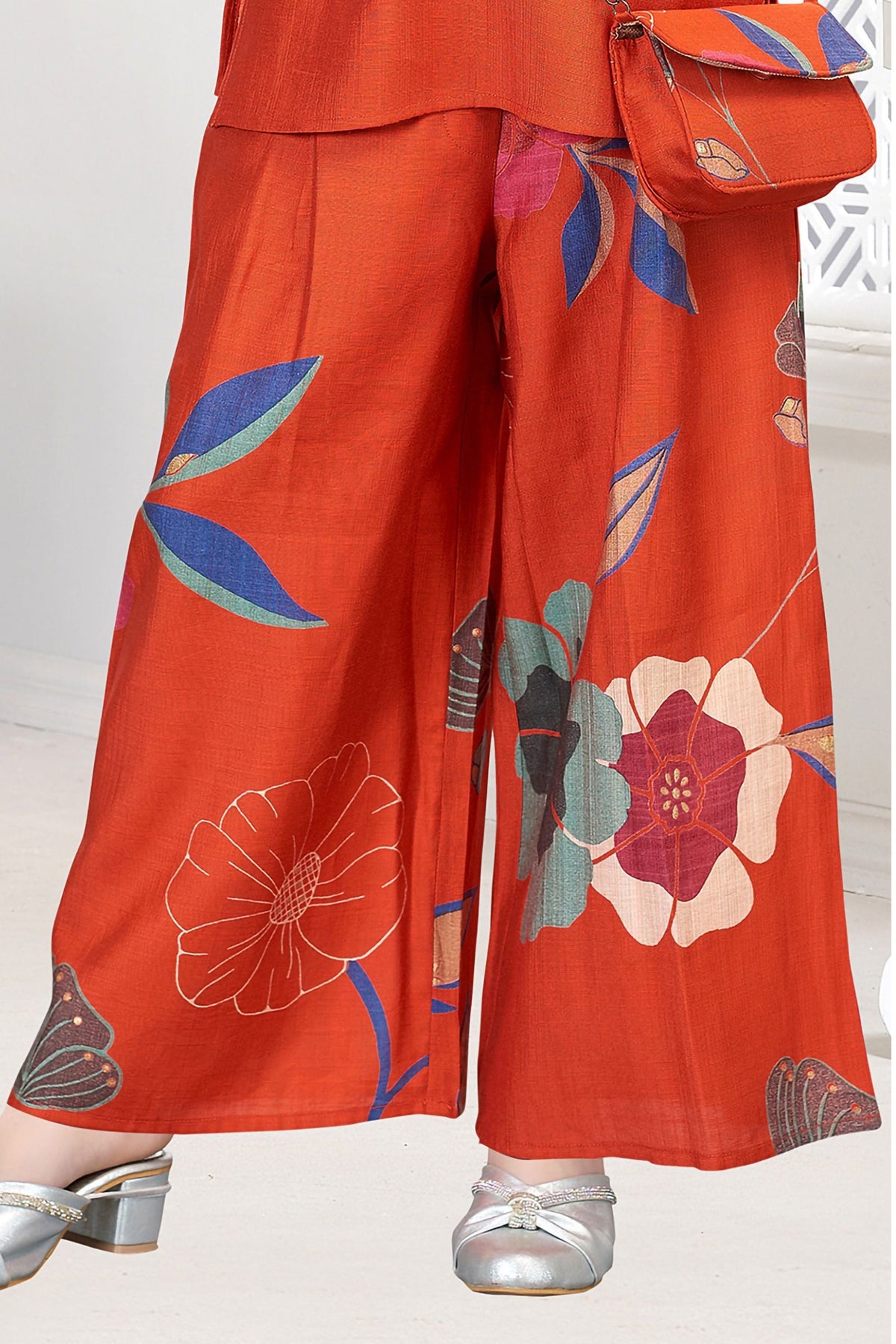 Brick Multicolor Digital Print Co-ord Set for Girls with Bag