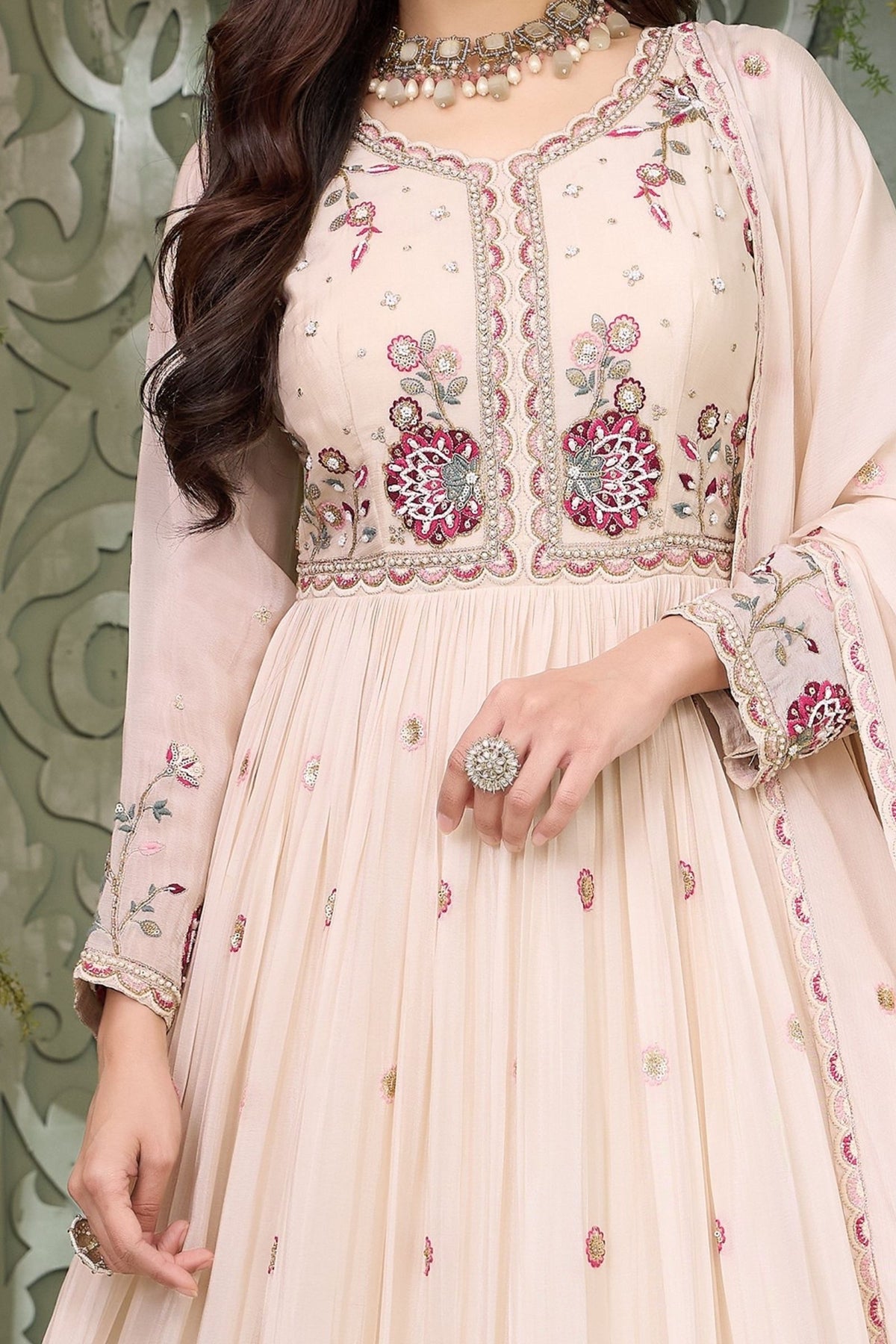 Cream Multicolor Thread, Beads, Sequins and Zari work Floor Length Anarkali Suit