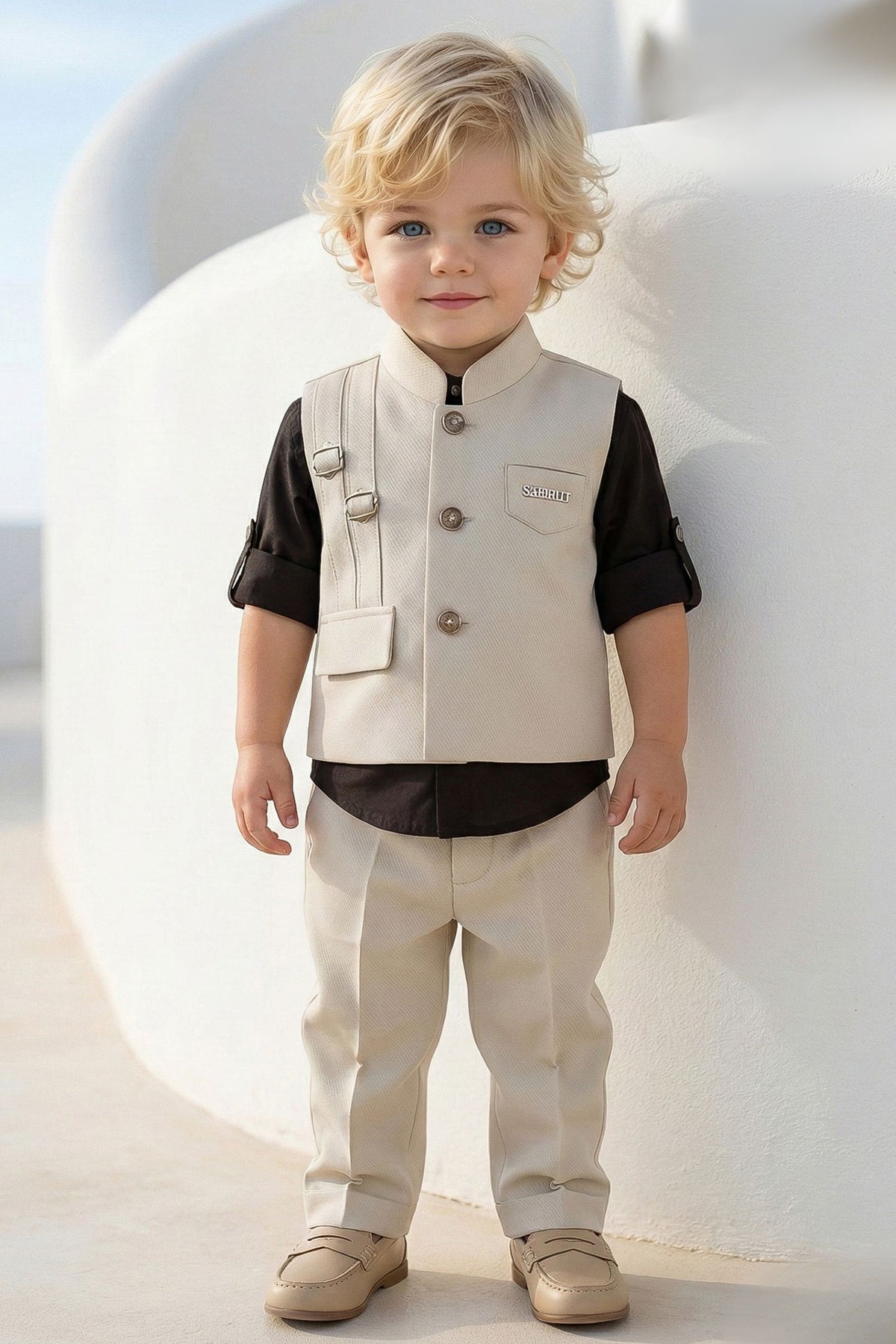 Cream with Brown Waist Coat Set for Boys