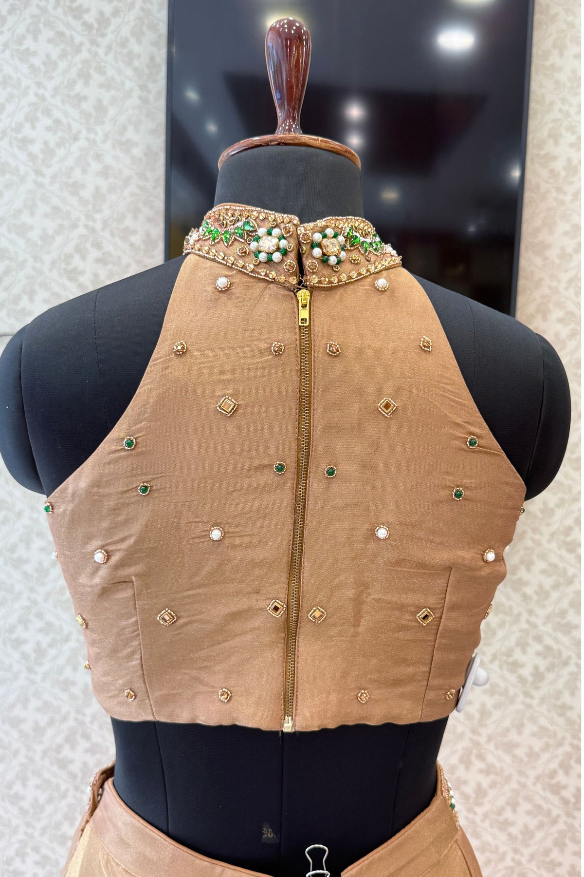 | Features | Beads, Zardozi, Stone, Sequins and Pearl work with Halter Neck |