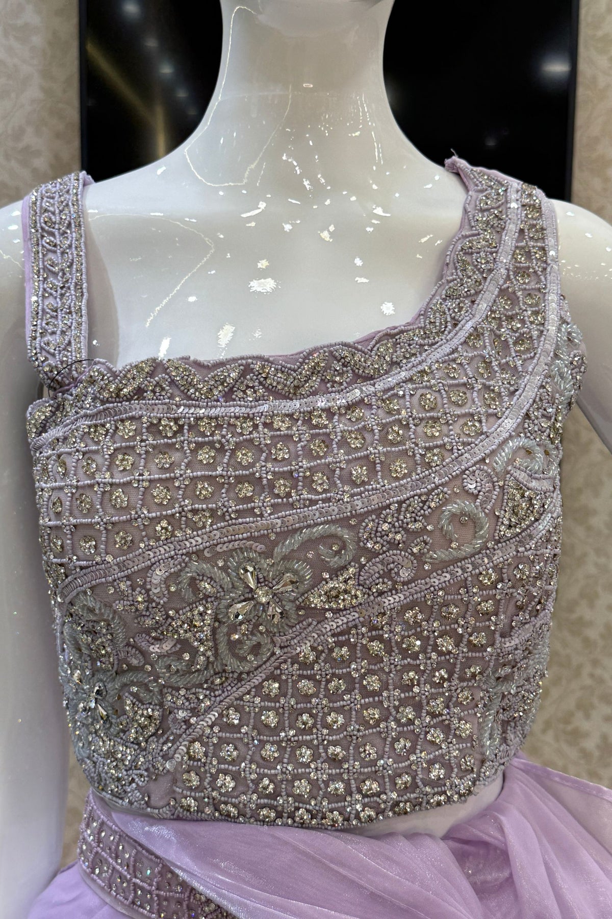 Lavender Readymade Saree with Beads and Stone work Readymade Blouse
