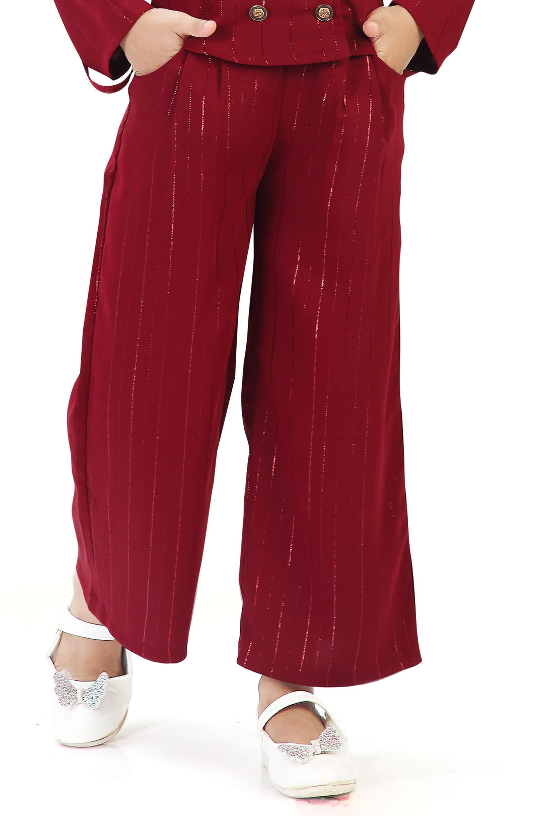 Maroon Zari work Top and Palazzo Set for Girls