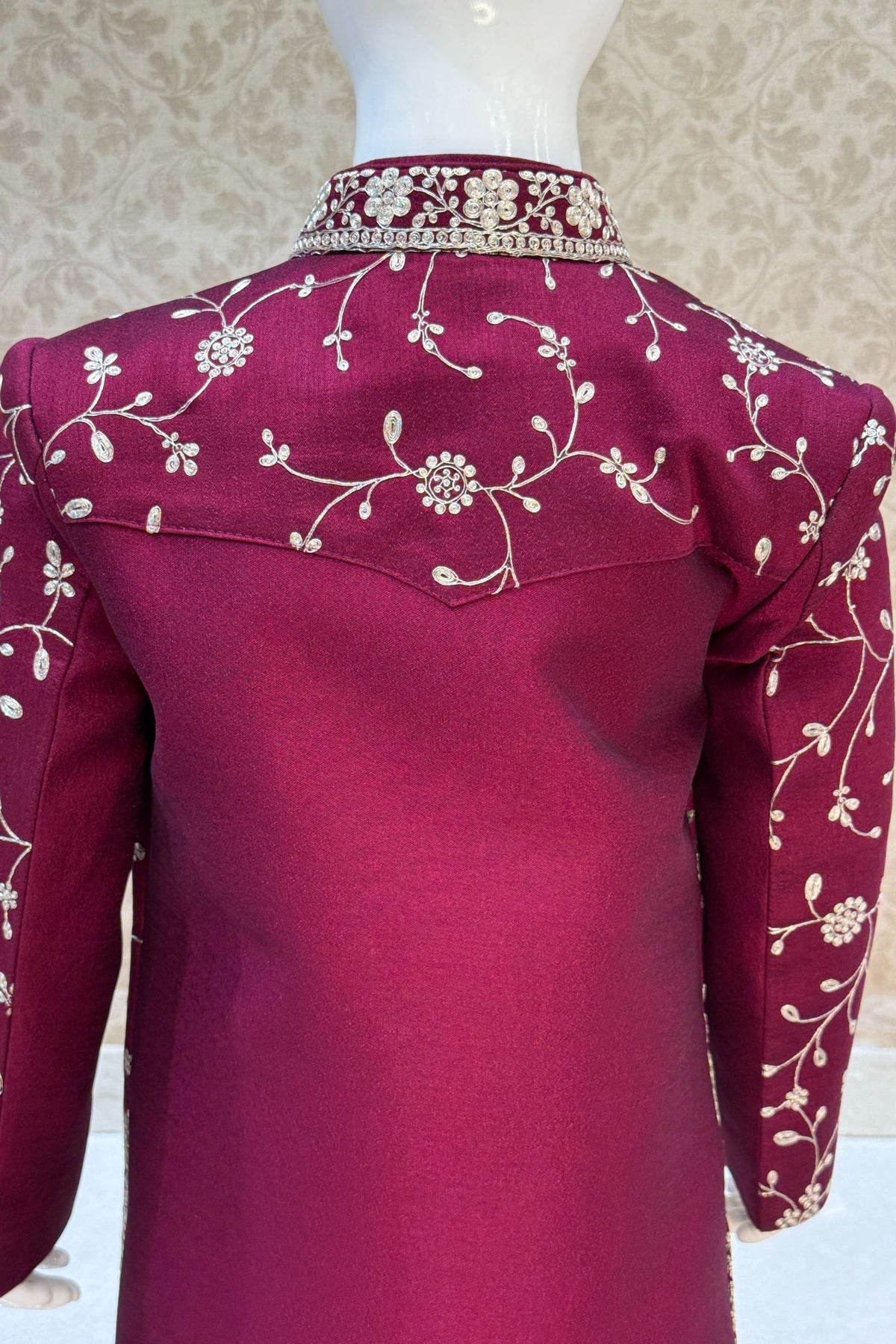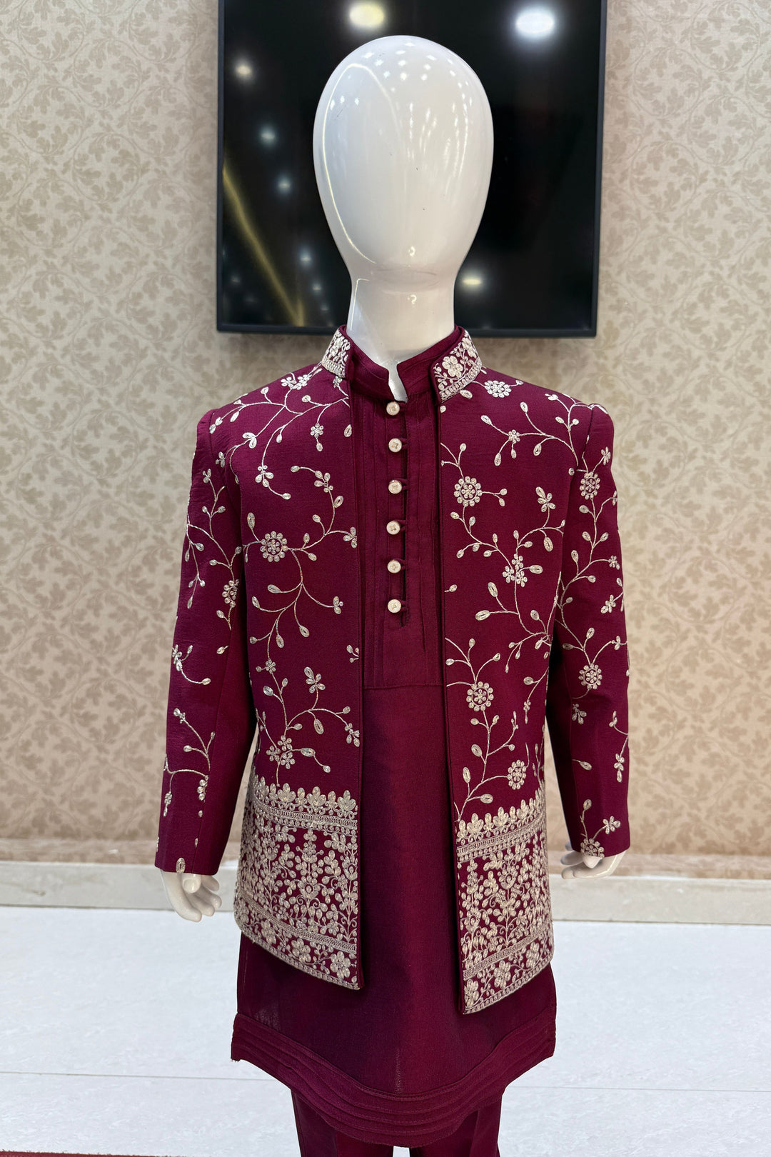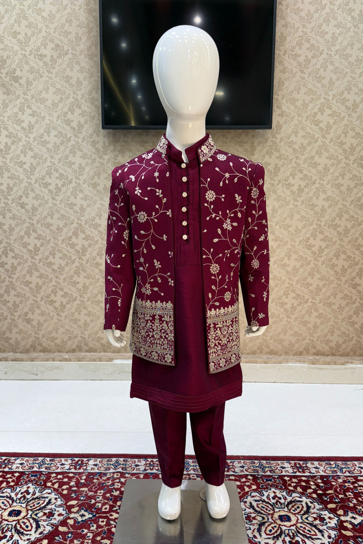 Maroon Zari work Waist Coat Kurta Set for Boys