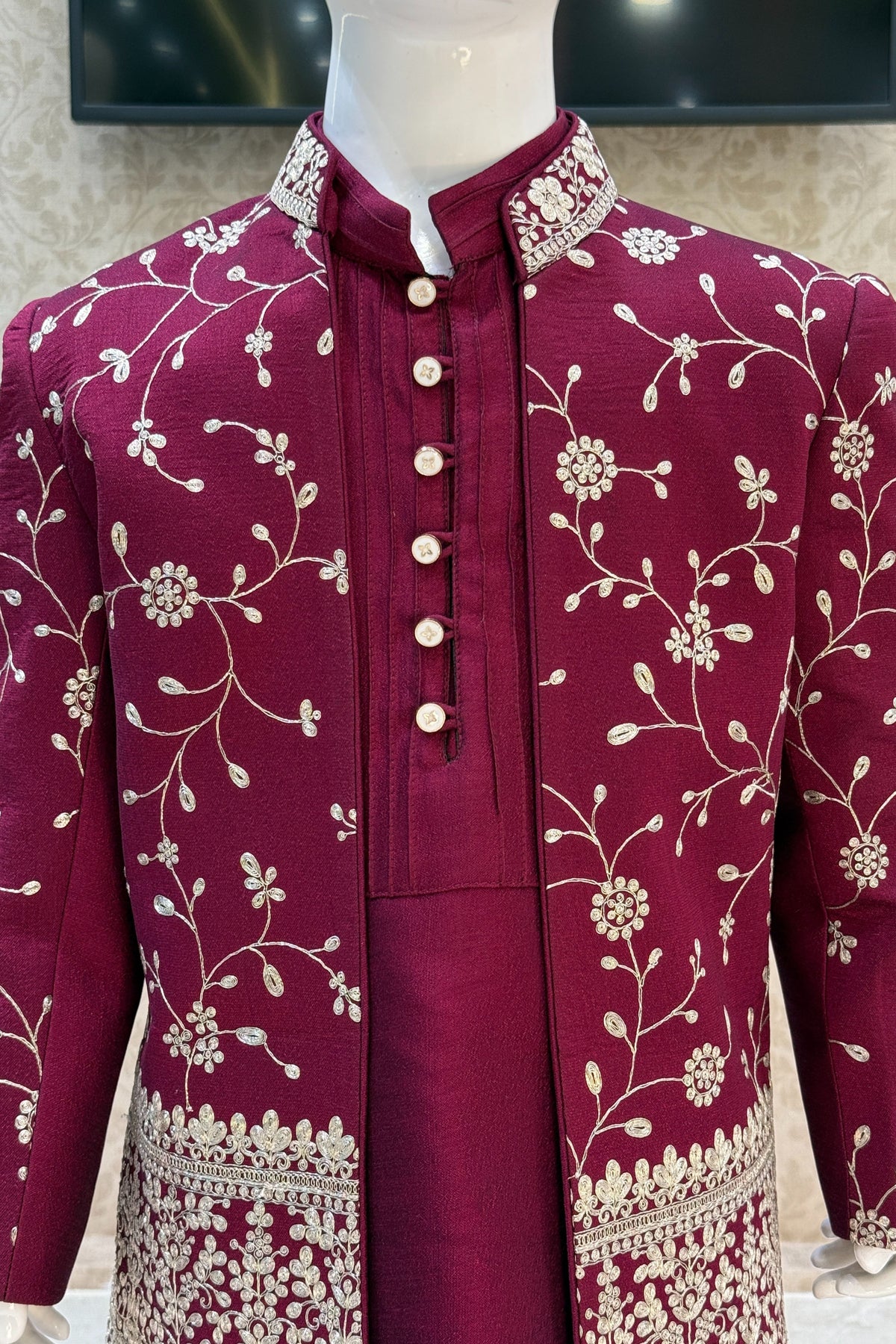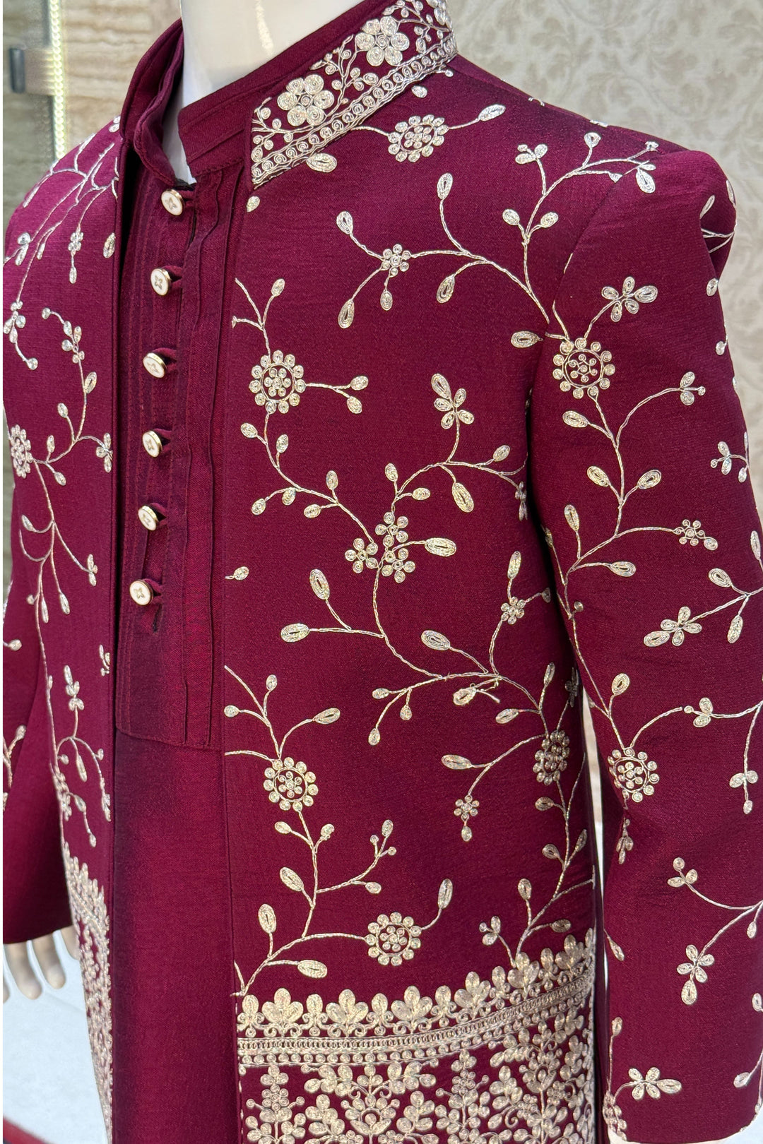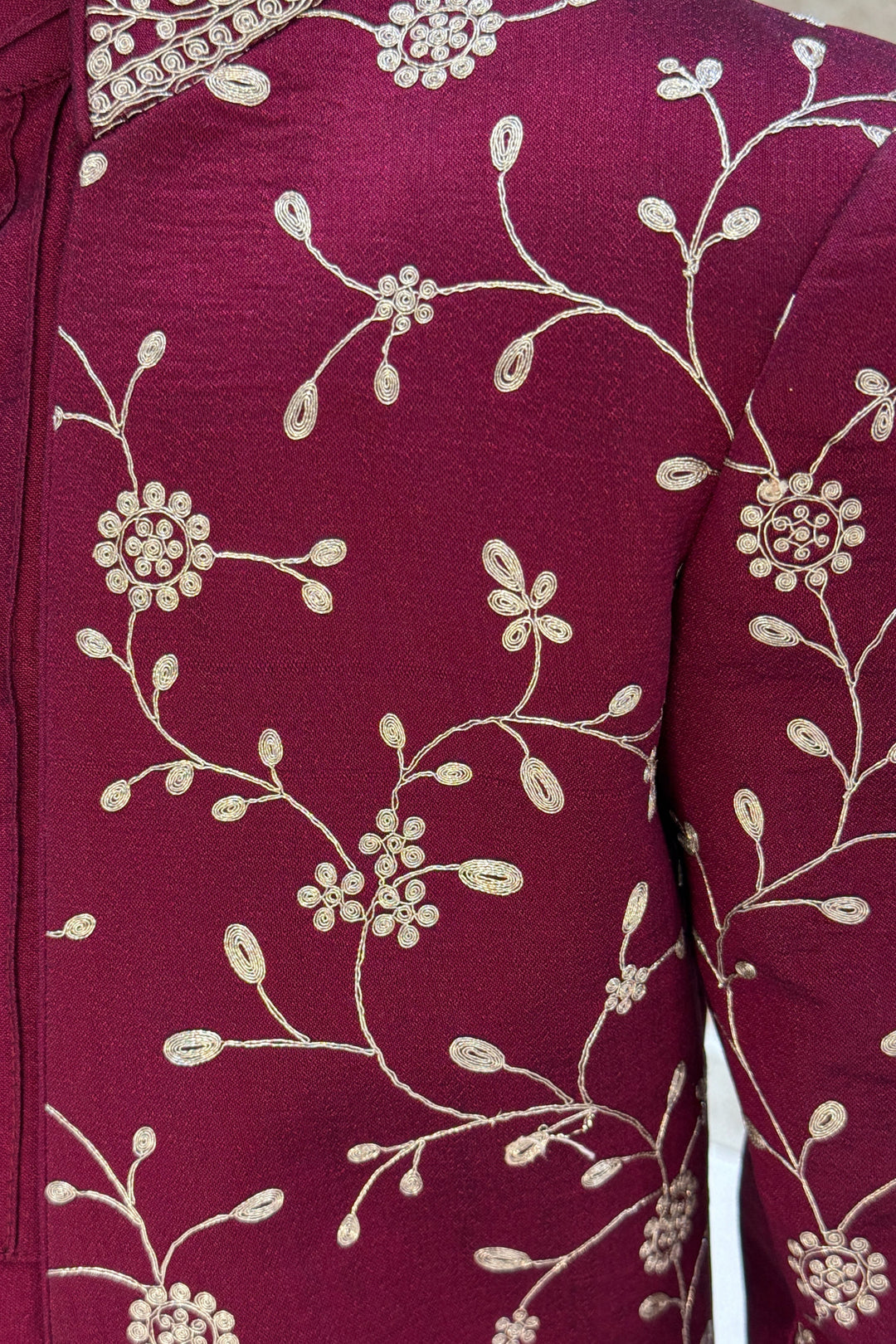 Maroon Zari work Waist Coat Kurta Set for Boys