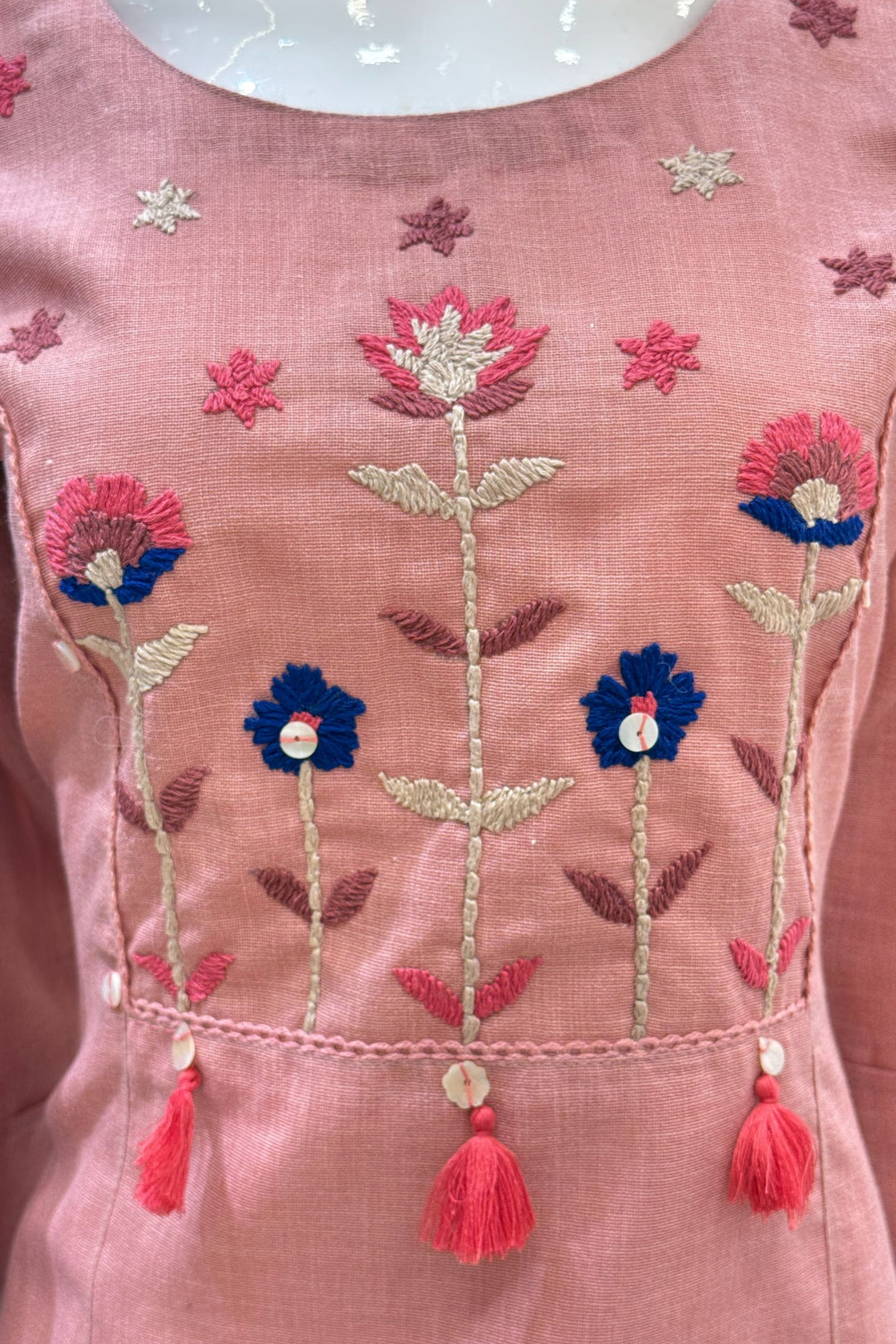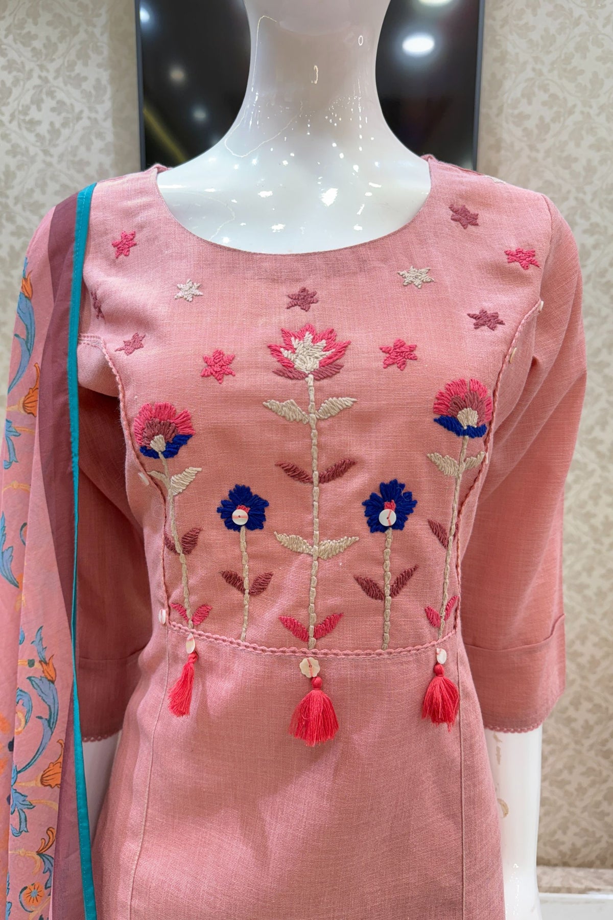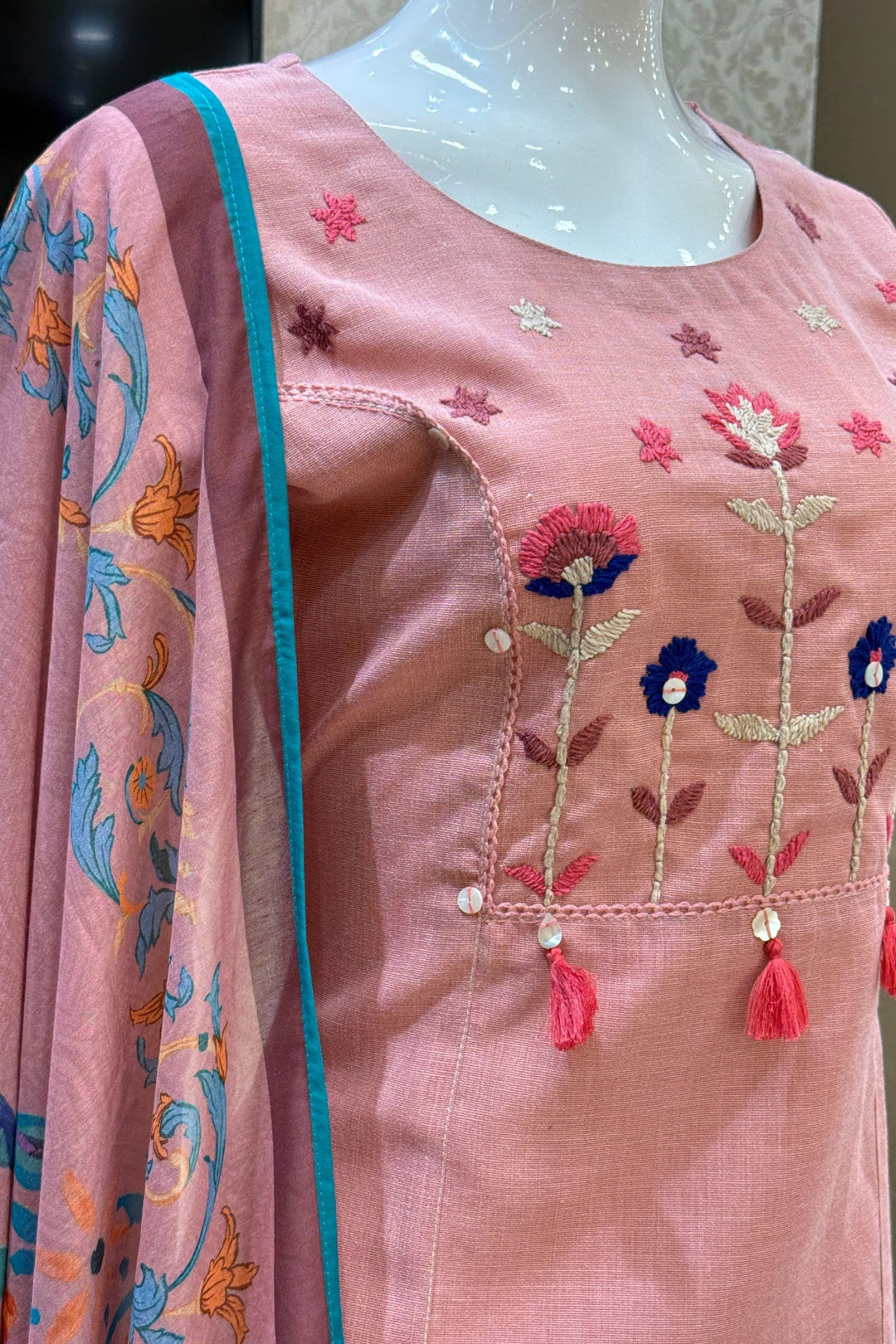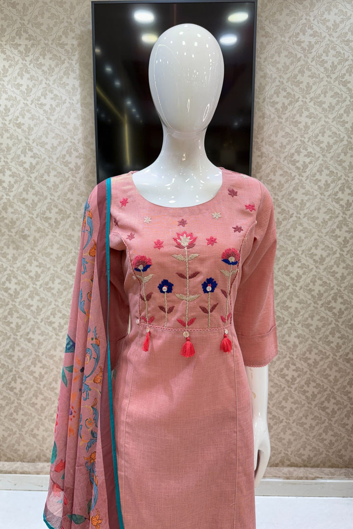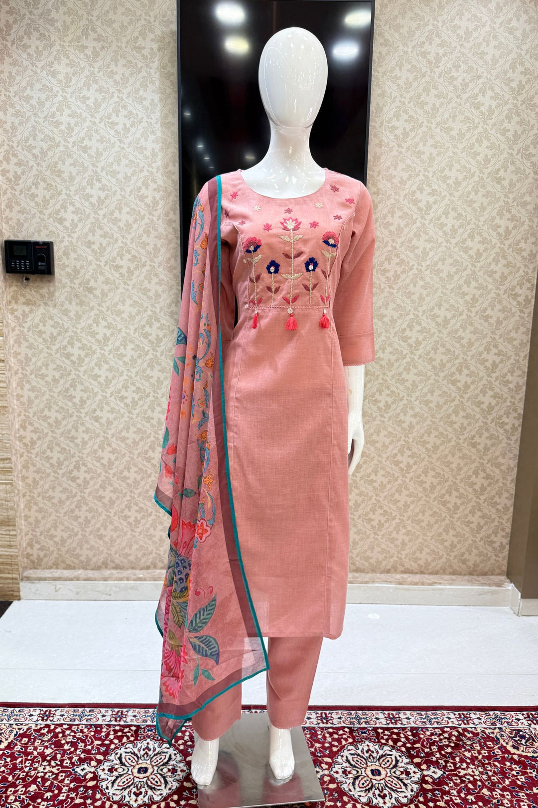 Onion Pink Embroidery work Straight Cut Salwar Suit with Digital Print Dupatta