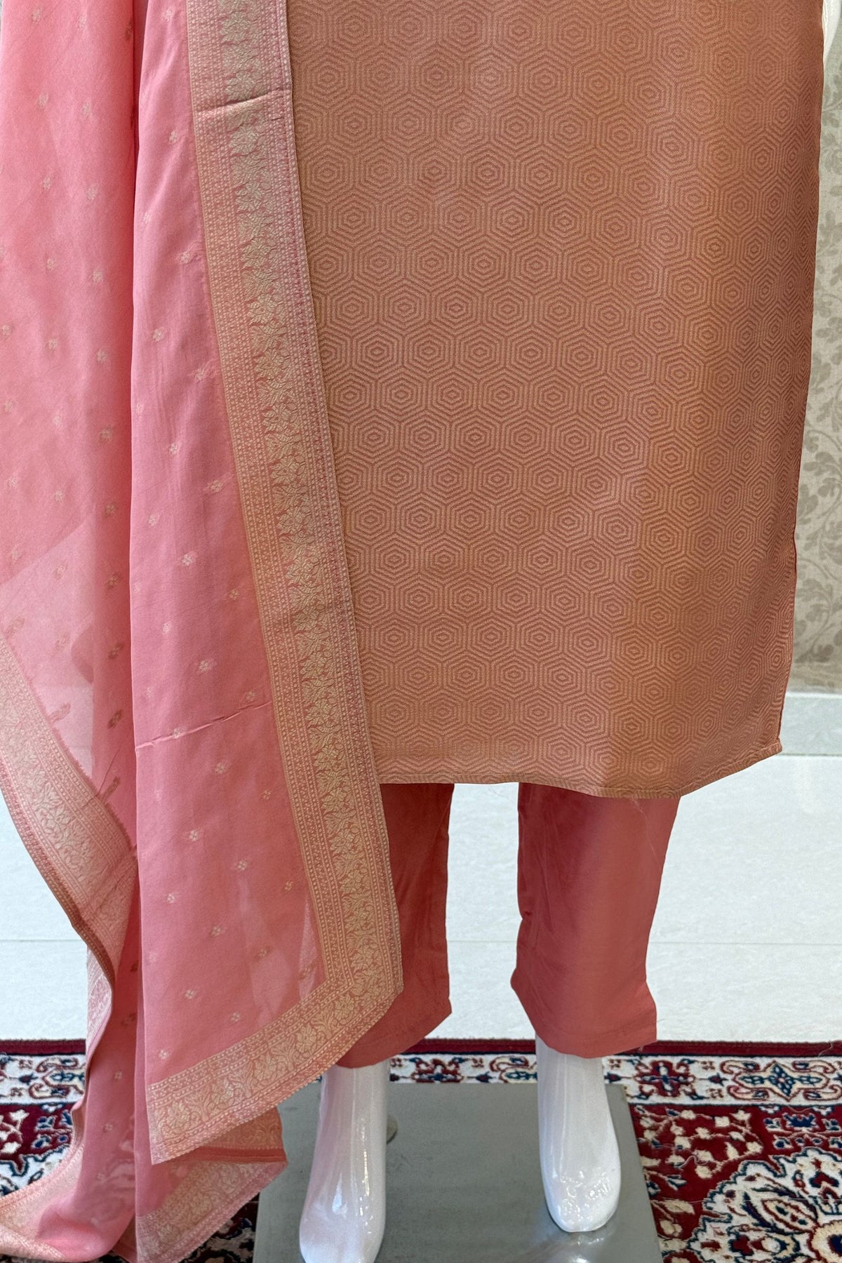 Peach Zardozi, Sequins, Stone, Zari, Banaras and Beads work Straight Cut Salwar Suit