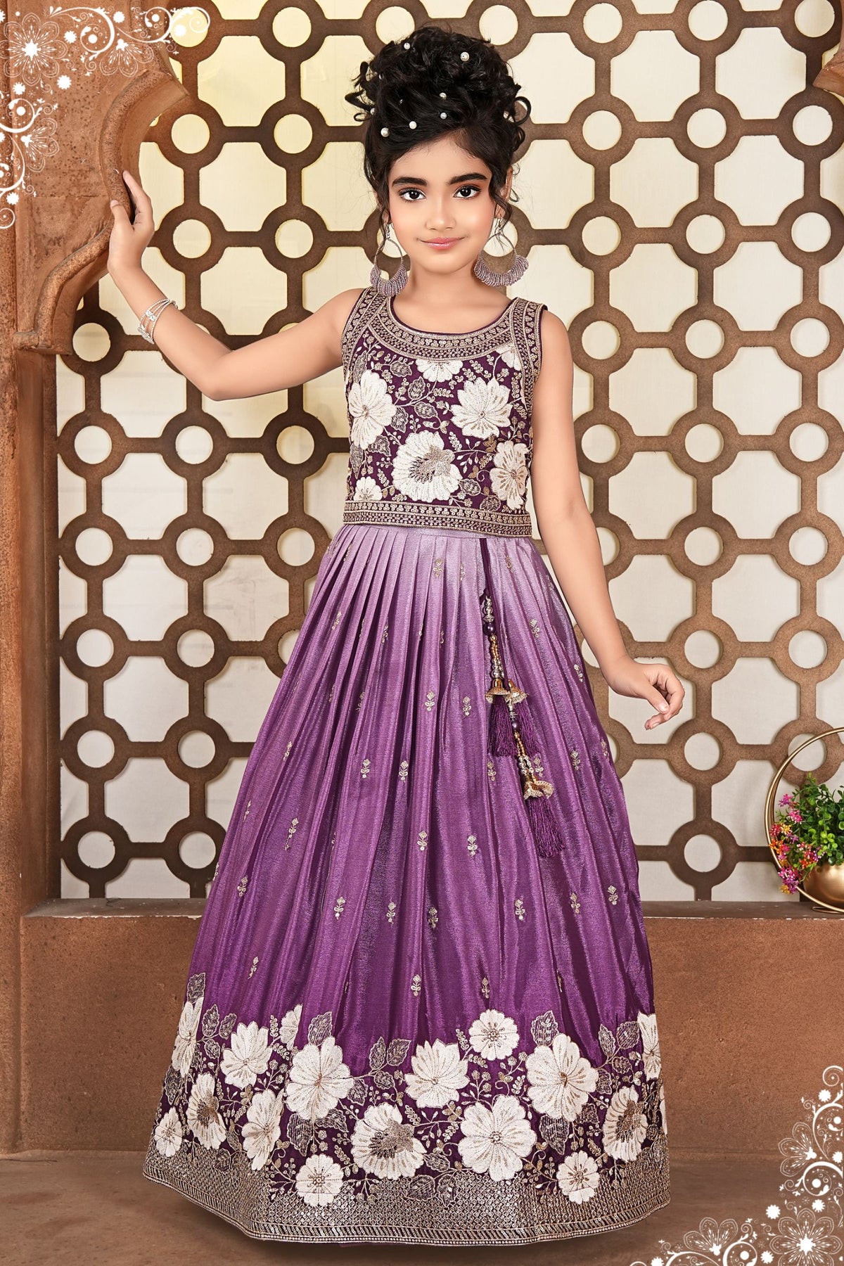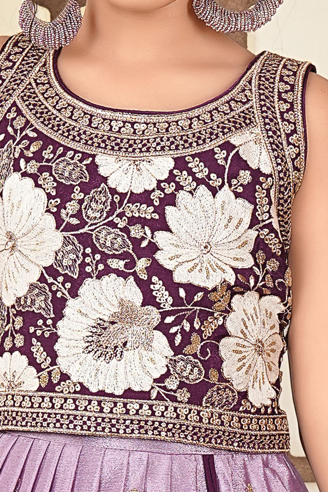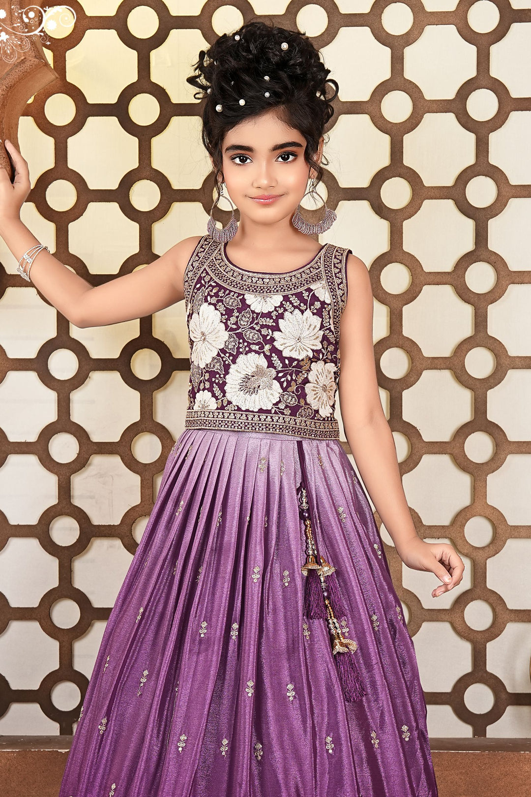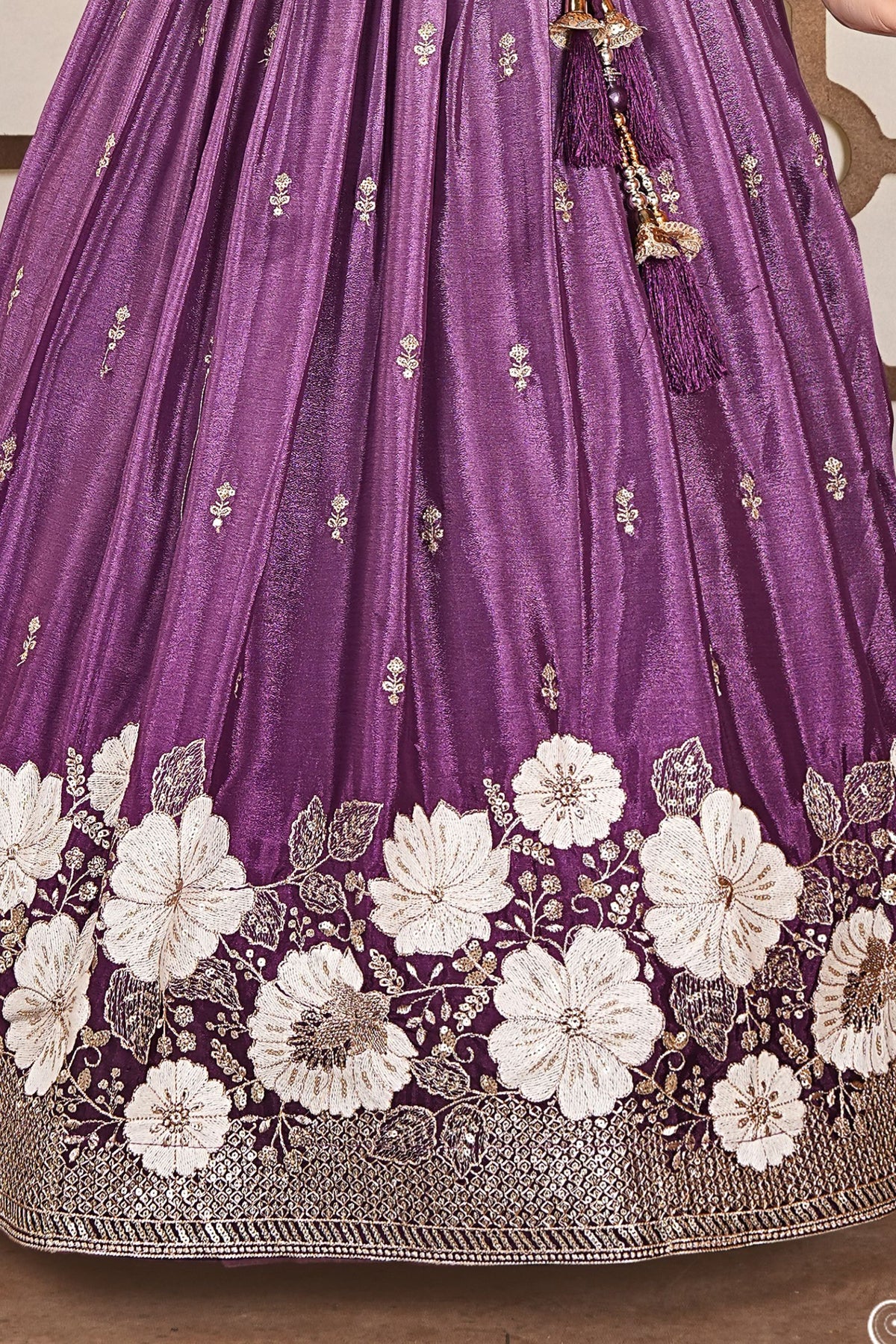 Purple Embroidery, Zari and Sequins work Lehenga Choli for Girls