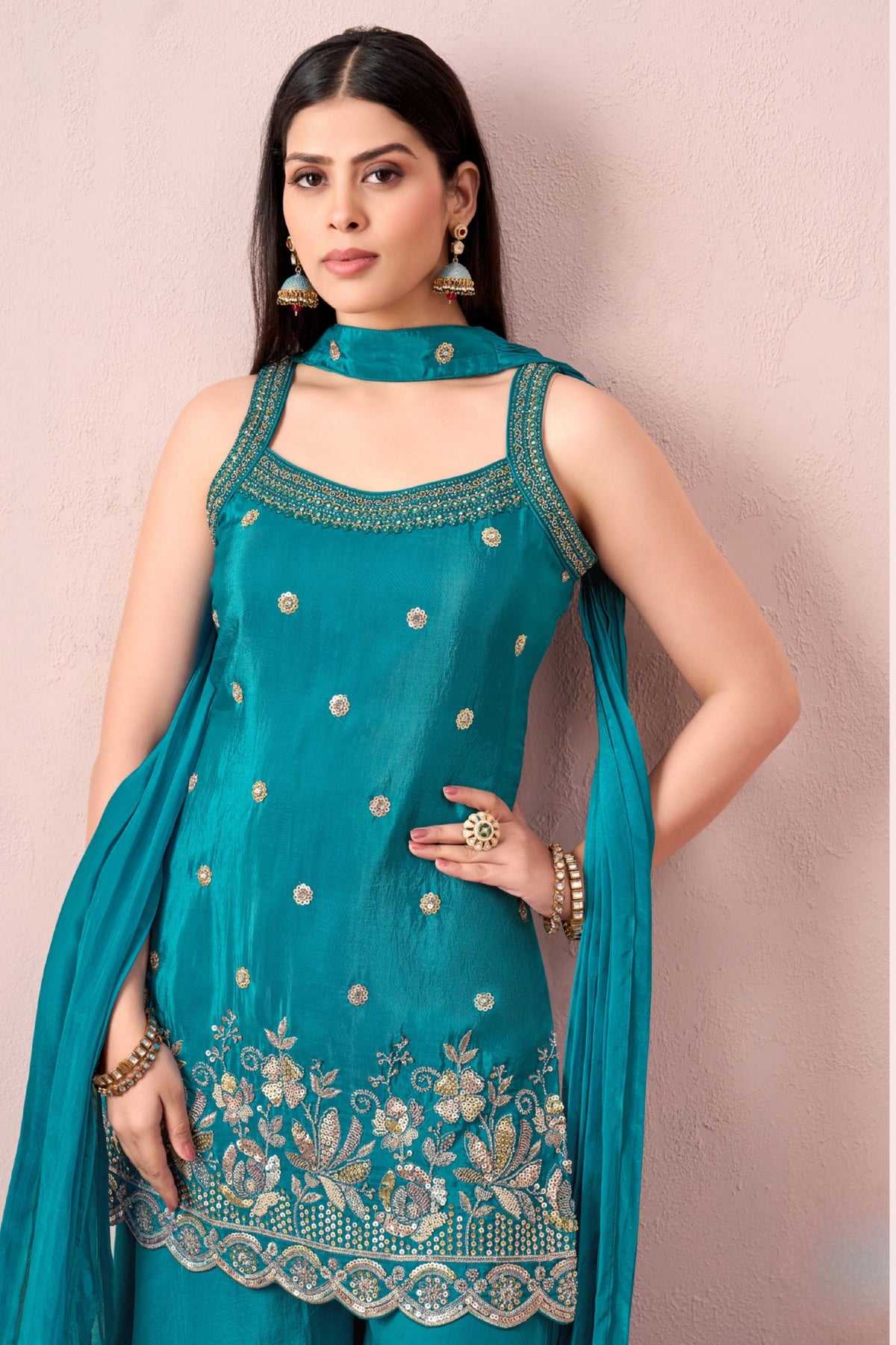 Rama Blue Sequins, Zari, Beads and Stone work Palazzo Salwar Suit