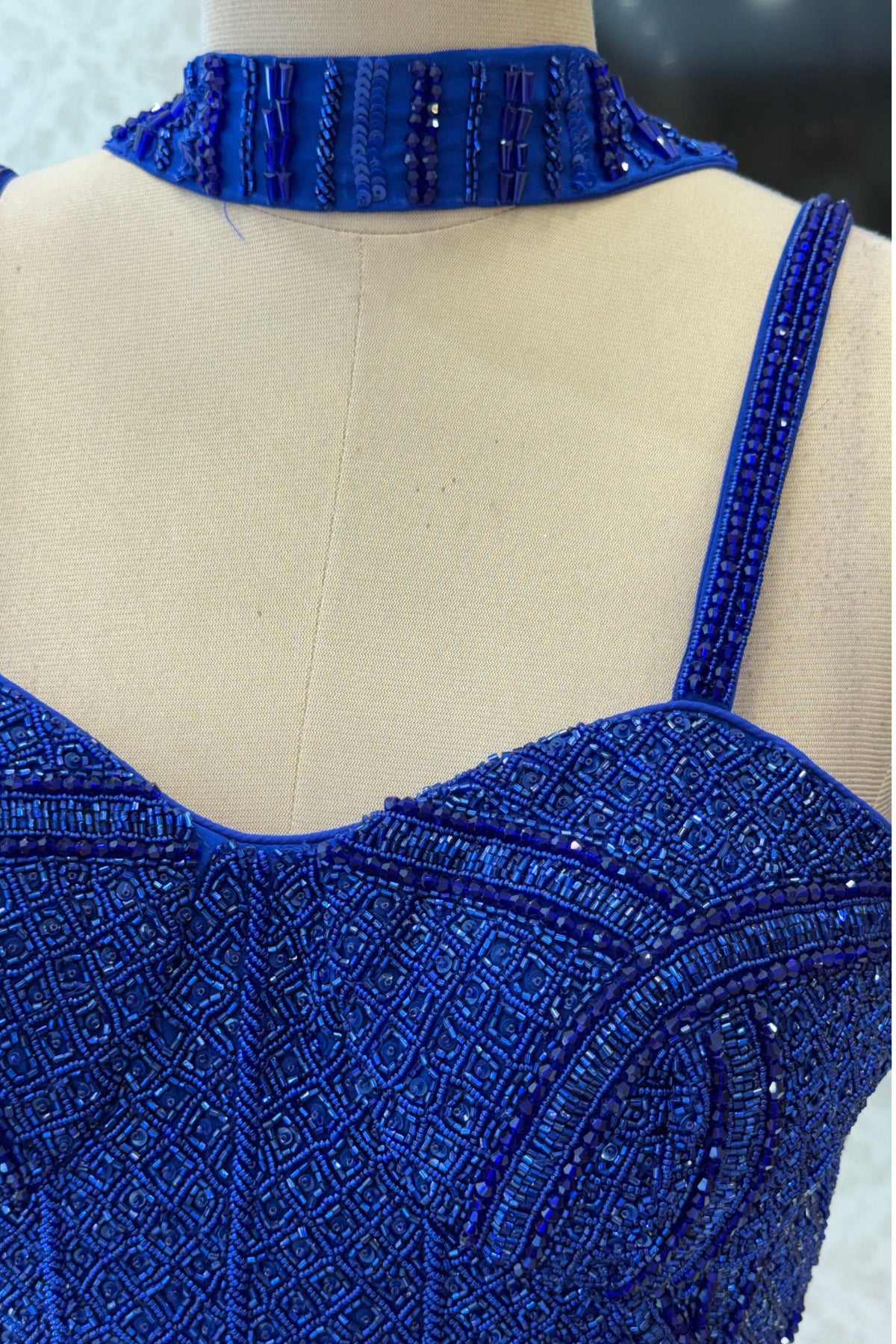 Royal Blue Beads and Sequins work Crop Top Lehenga