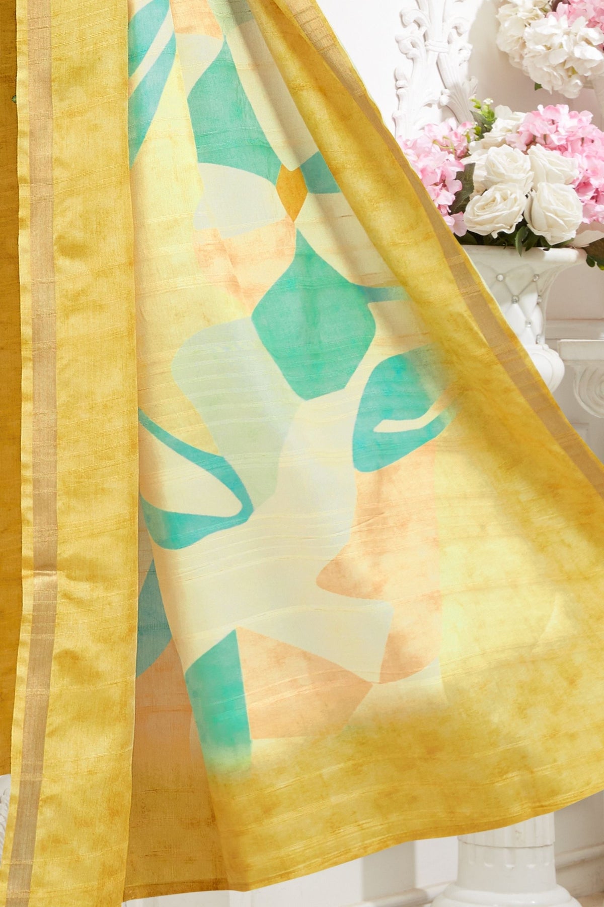 Yellow Zardozi, Sequins, Thread and Mirror work Straight Cut Salwar Suit with Multicolor Digital Print Dupatta