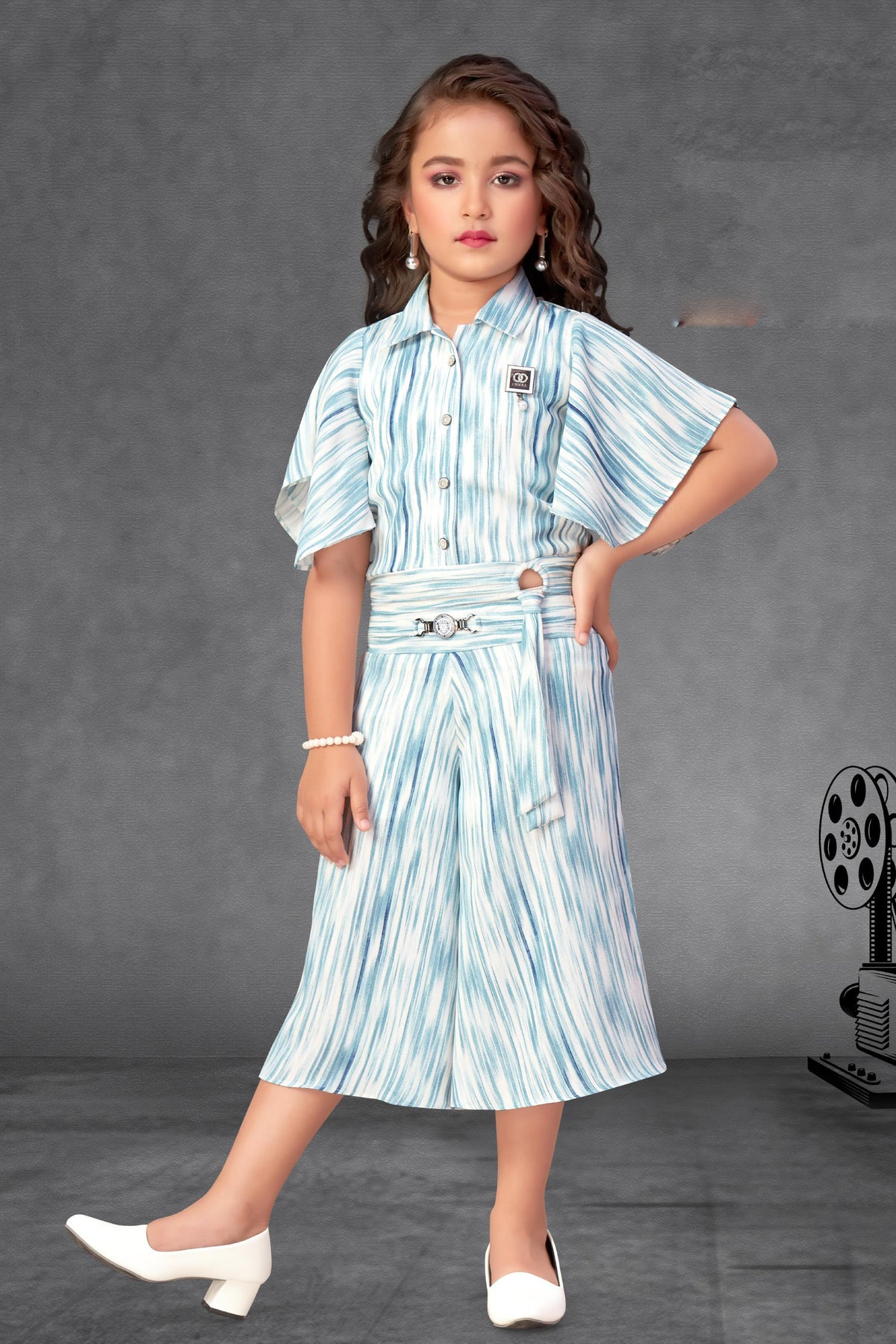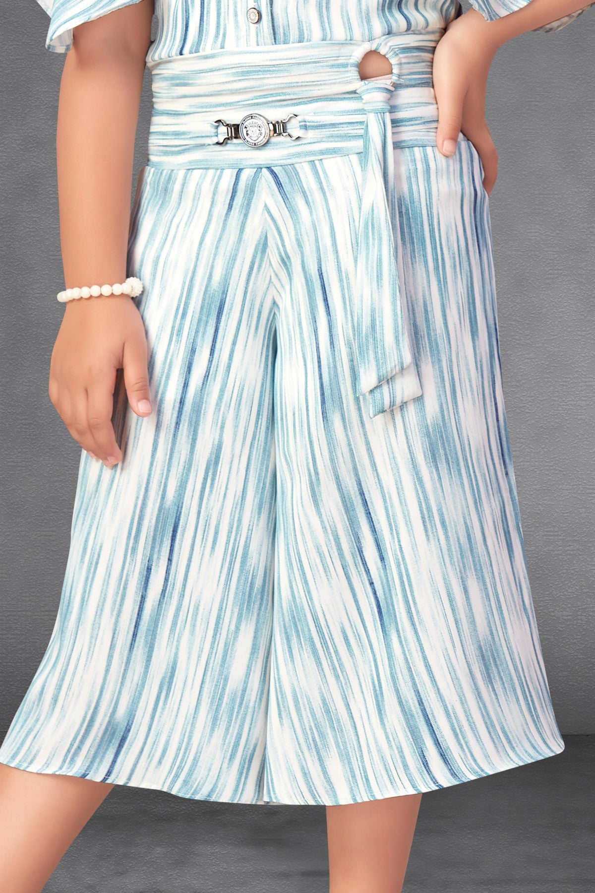 Half White with Blue Printed Top with Palazzo Set for Girls.