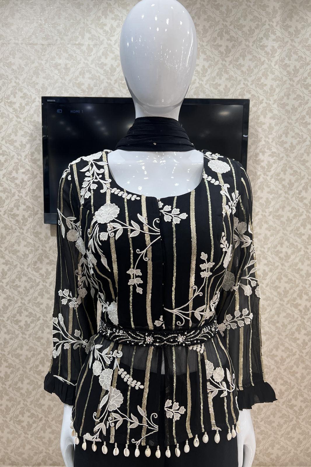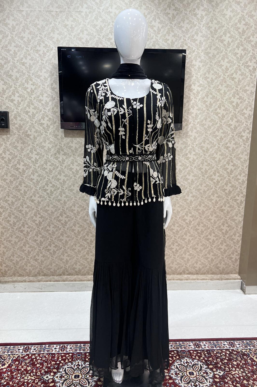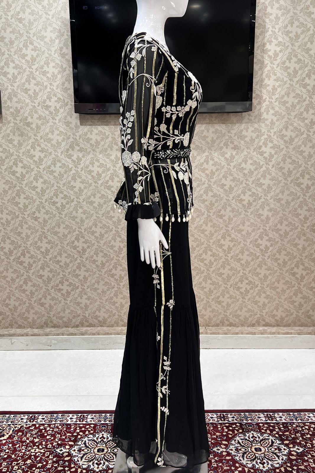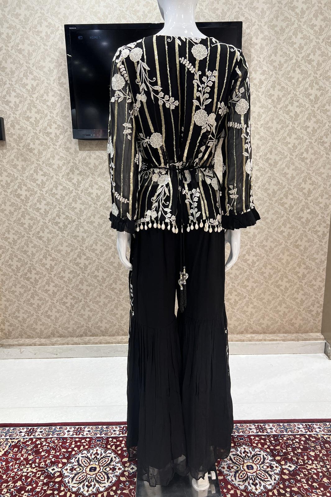 Black Embroidery and Sequins work Peplum Top with Sharara Suit Set
