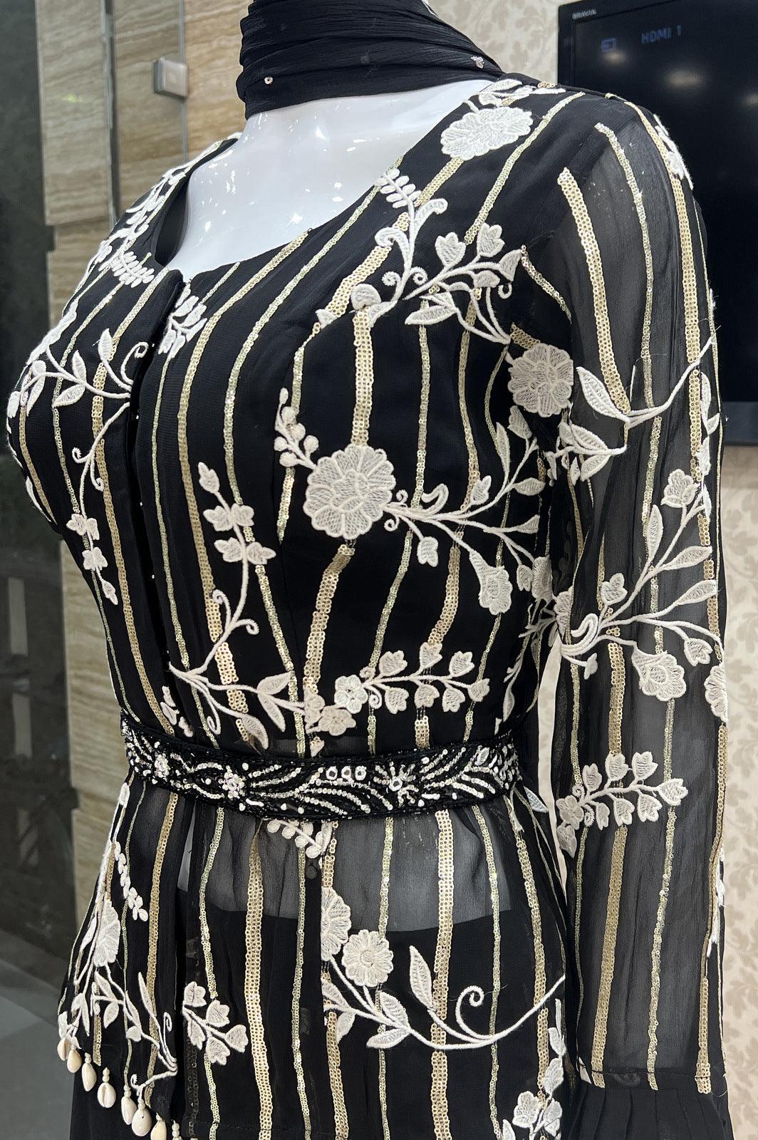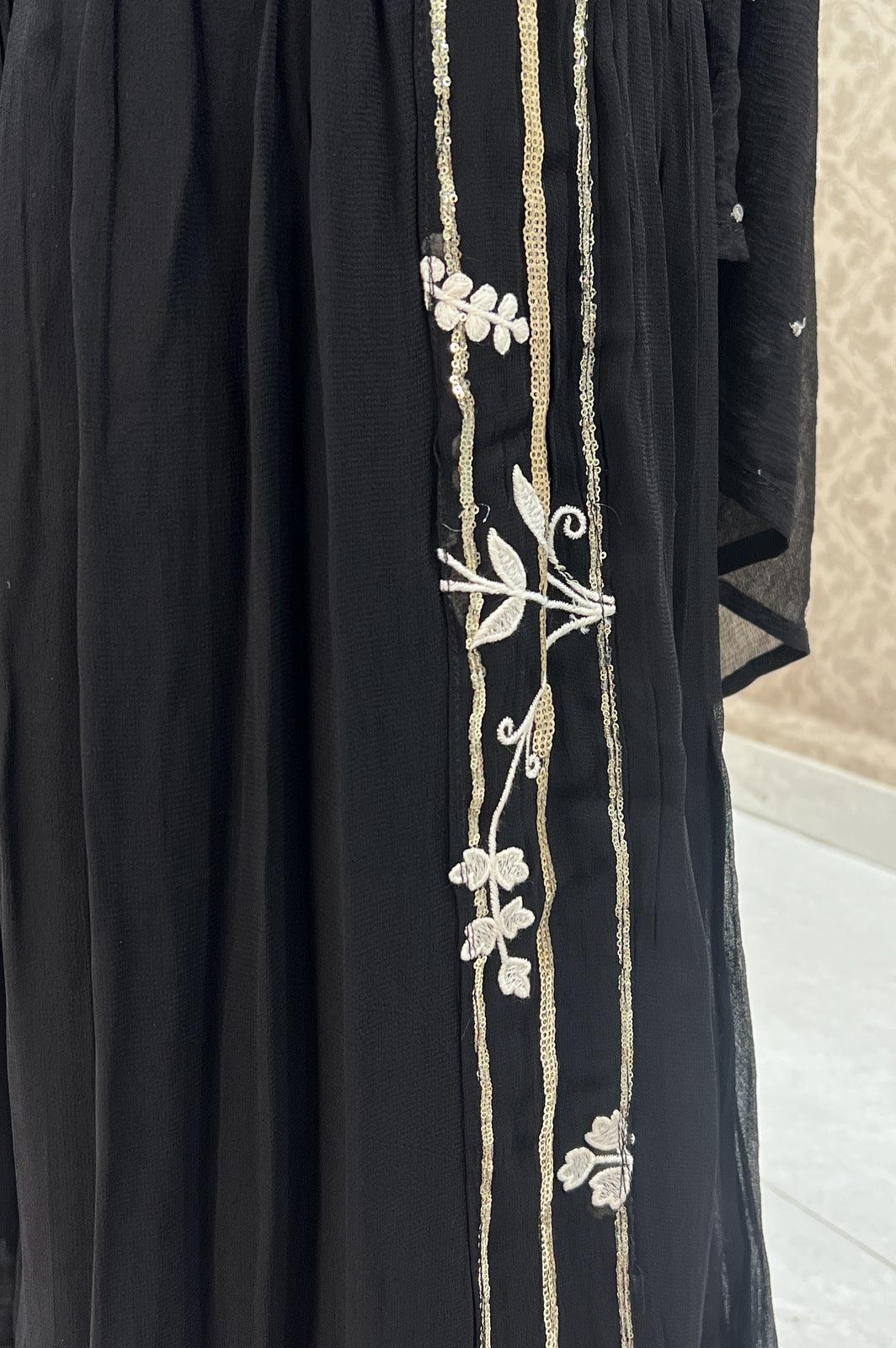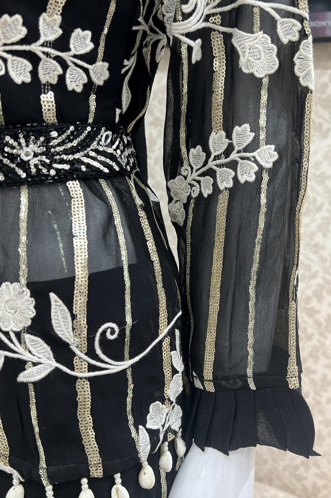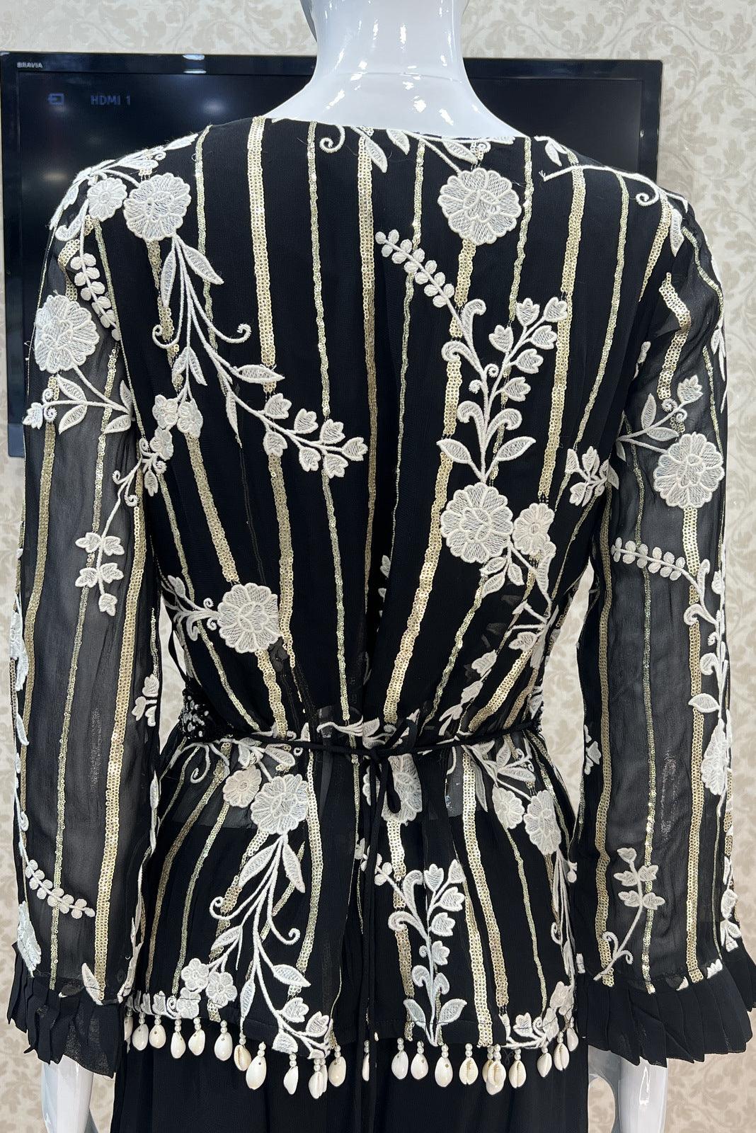 Black Embroidery and Sequins work Peplum Top with Sharara Suit Set