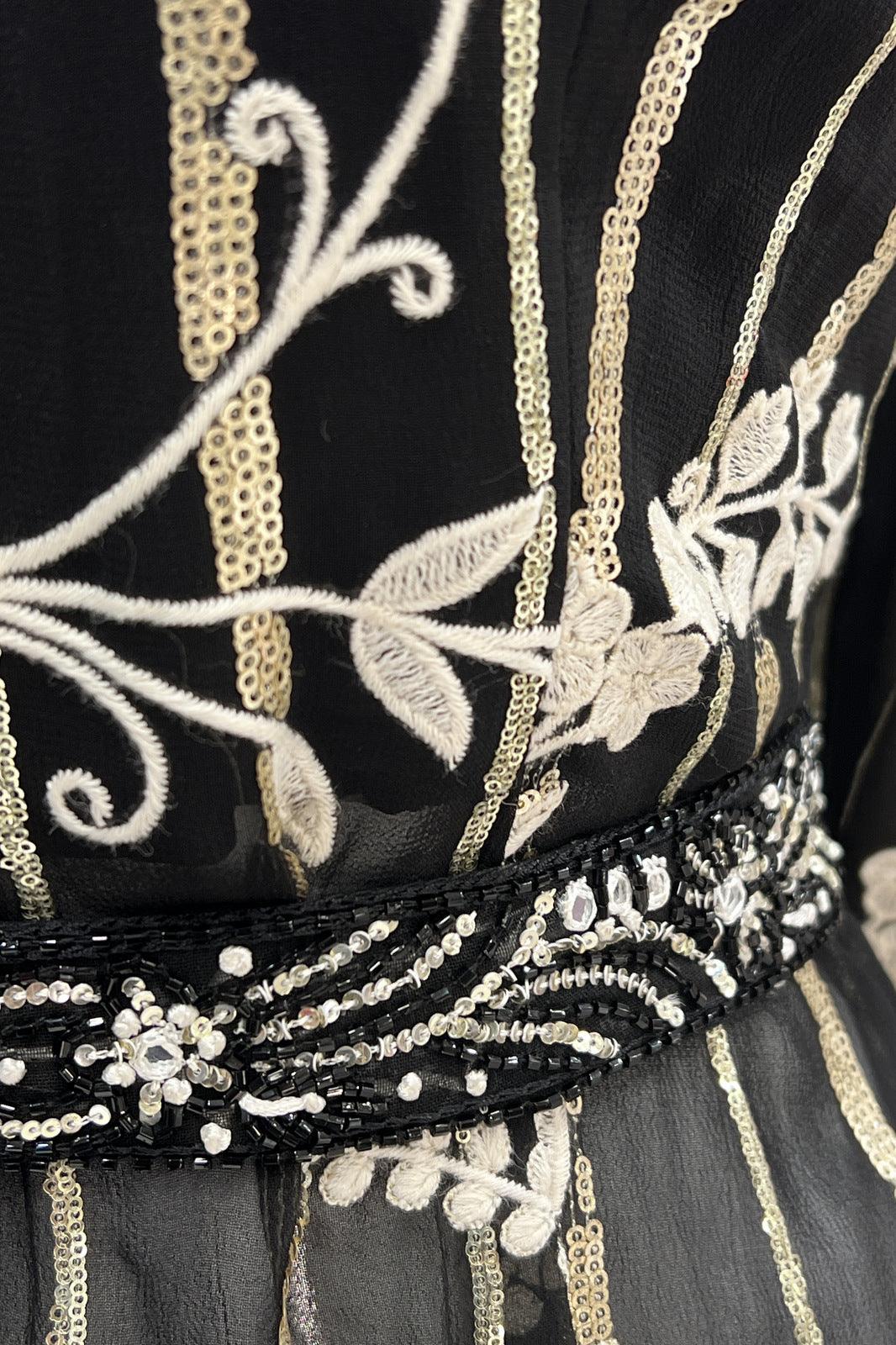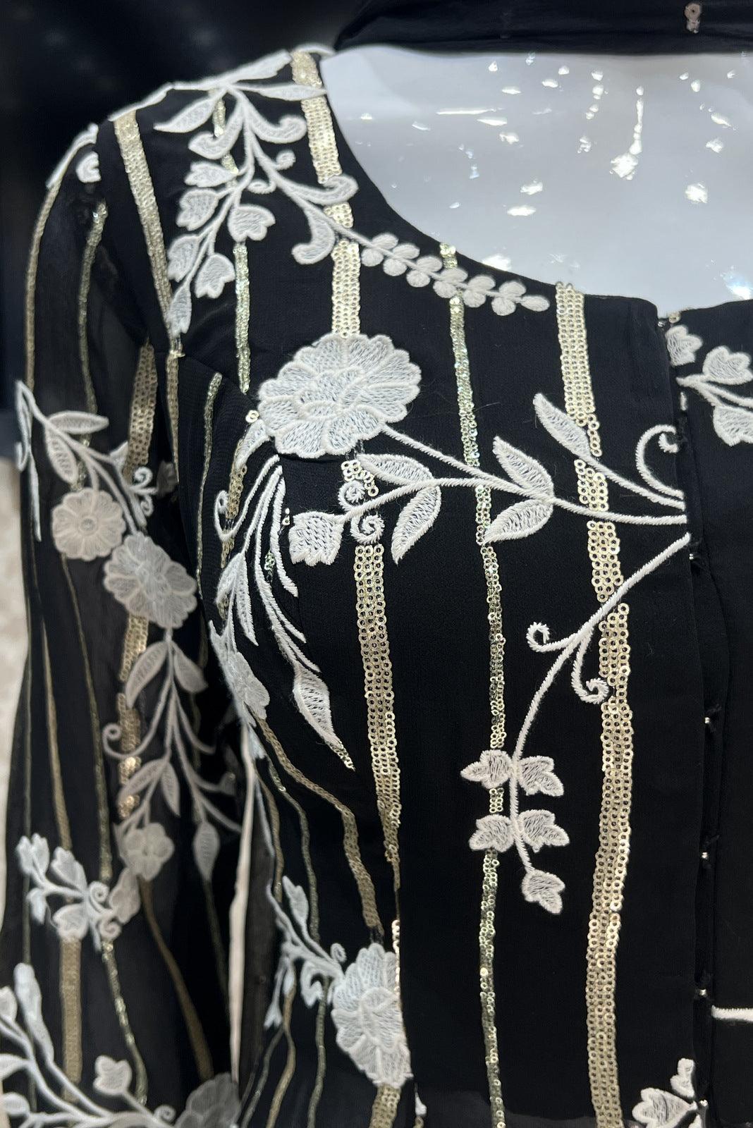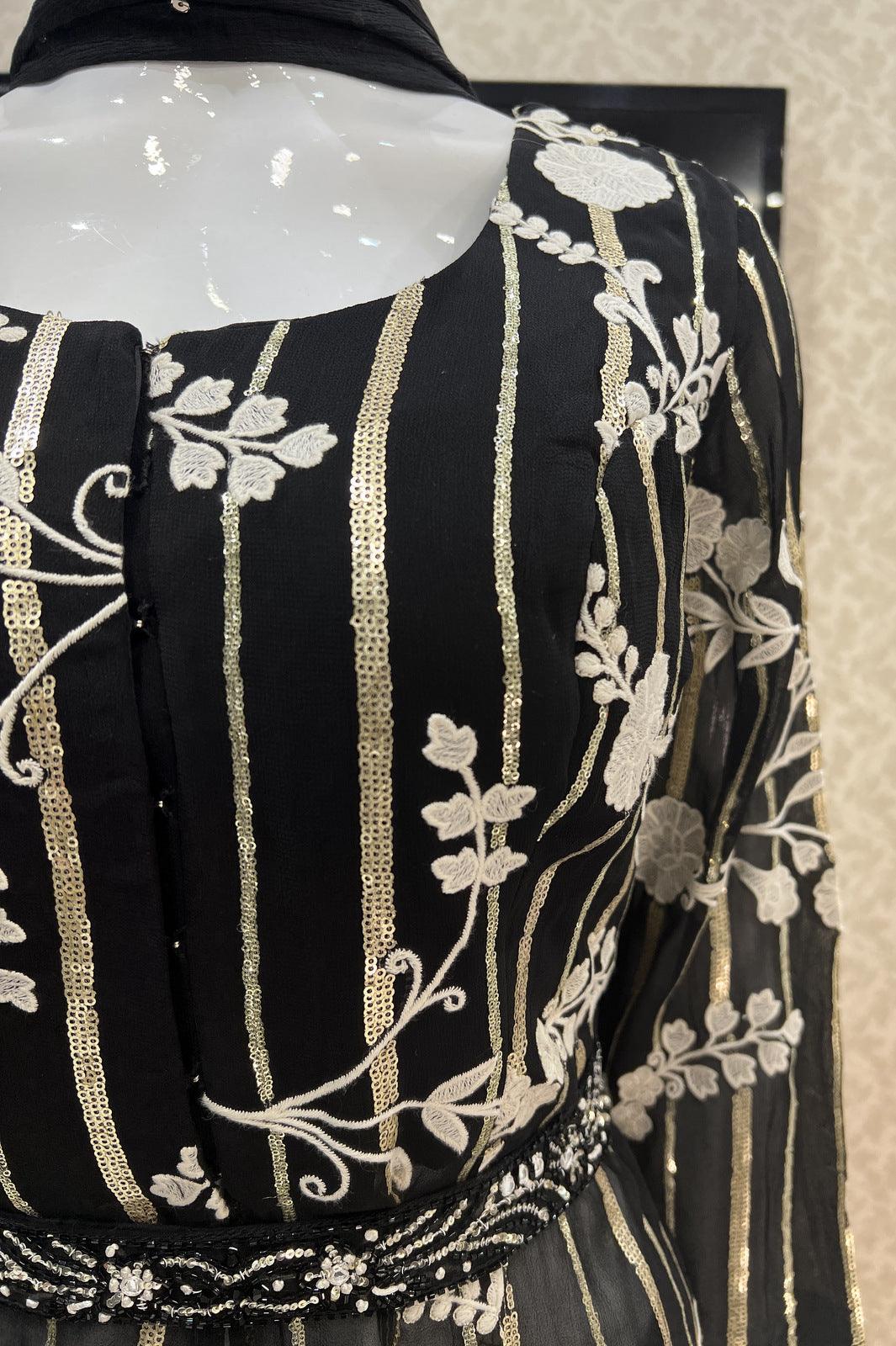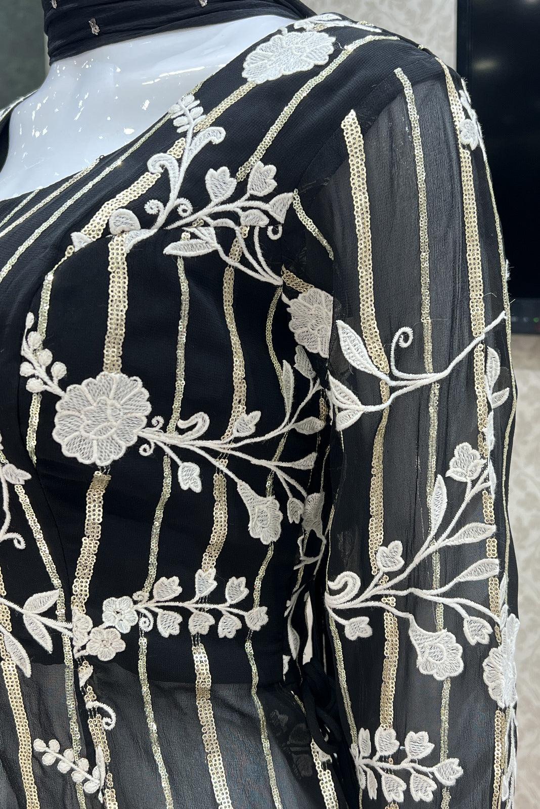 Black Embroidery and Sequins work Peplum Top with Sharara Suit Set