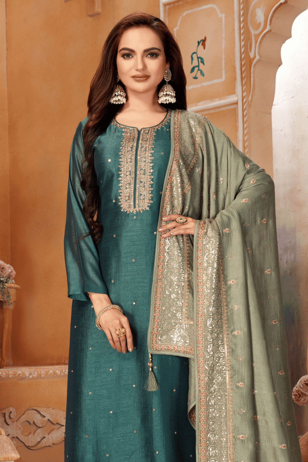 Bottle Green Zari and Sequins work Straight Cut Salwar Suit - Seasons Chennai