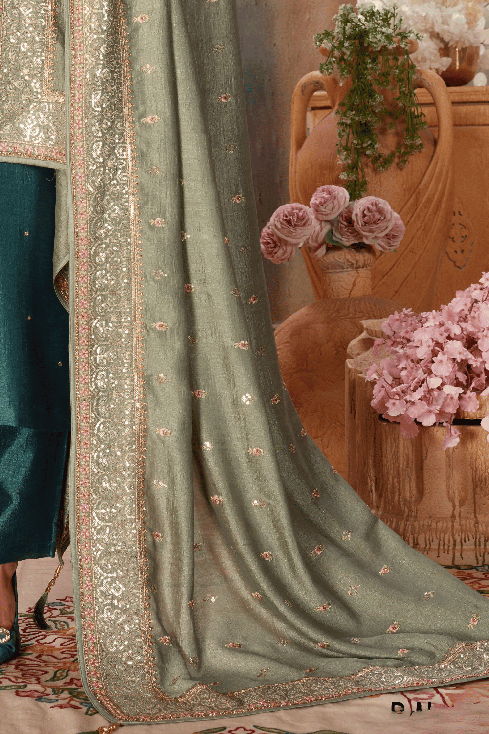 Bottle Green Zari and Sequins work Straight Cut Salwar Suit